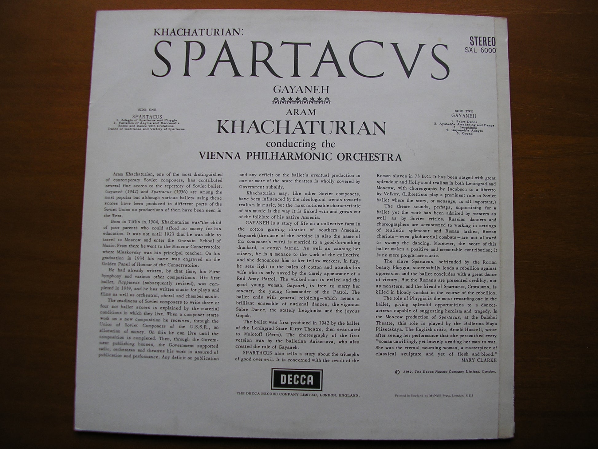 SXL 6000  KHACHATURIAN: SPARTACUS / GAYANEH     ARAM KHACHATURIAN / VIENNA PHILHARMONIC ORCHESTRA