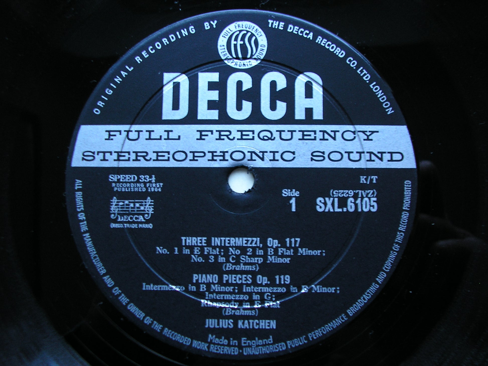 SXL 6105 BRAHMS: THREE INTERMEZZI Op.117 / PIANO PIECES Op. 118 & Op. 119      JULIUS KATCHEN