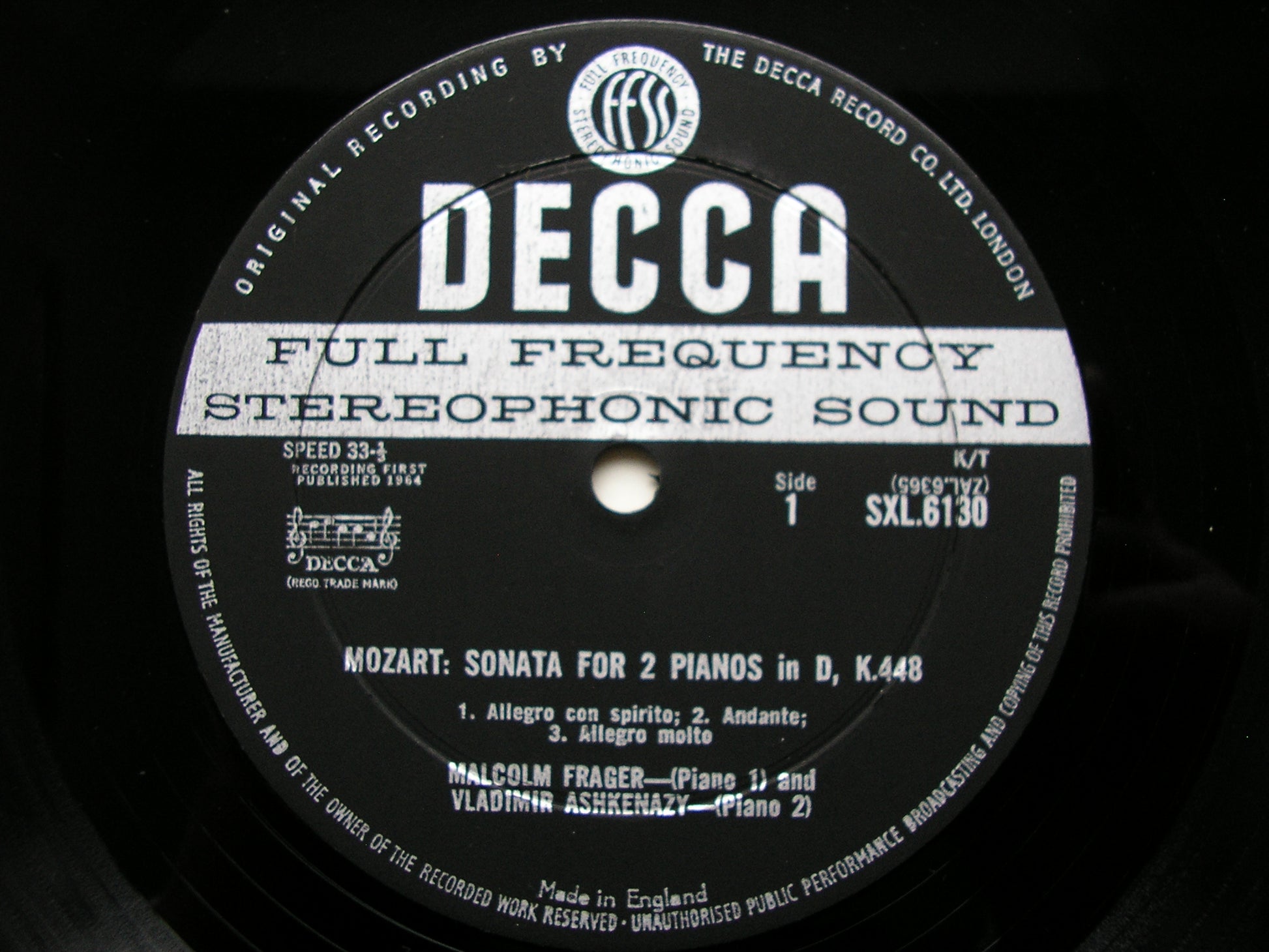 SXL 6130 MOZART: SONATA in D K388 / SCHUMANN: ANDANTE & VARIATIONS FOR TWO PIANOS, TWO CELLOS & HORN     VLADIMIR ASHKENAZY / MALCOLM FRAGER / BARRY TUCKWELL / AMARYLLIS FLEMING / TERENCE WEIL