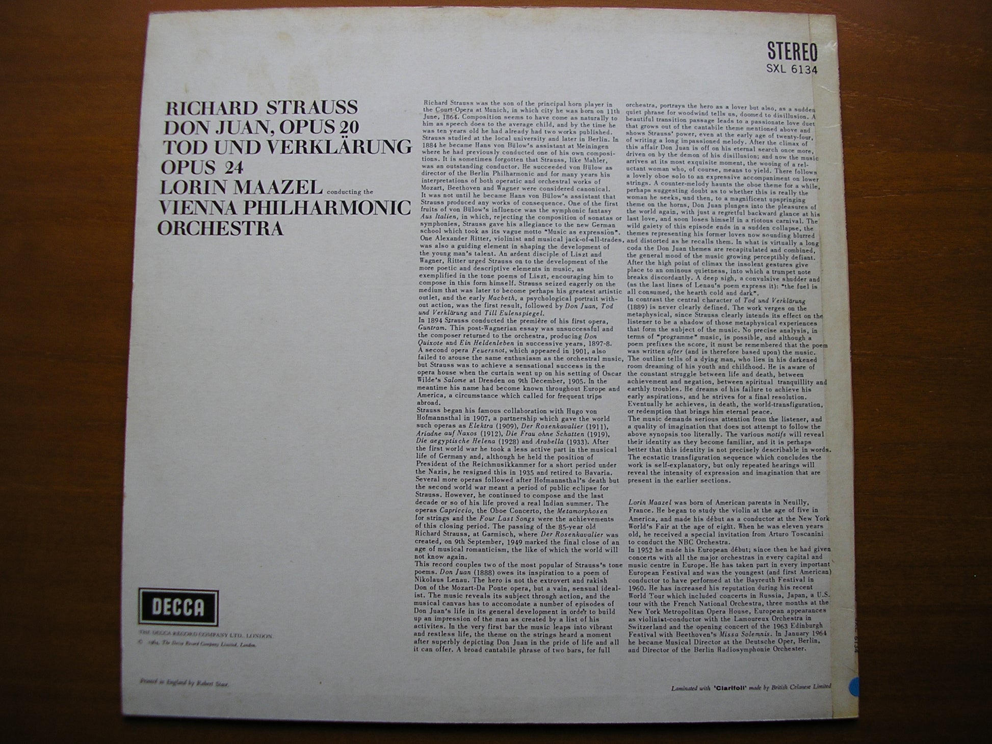 SXL 6134 RICHARD STRAUSS: DON JUAN Op. 29 / TOD UND VERKLARUNG Op. 24      LORIN MAAZEL / VIENNA PHILHARMONICORCHESTRA