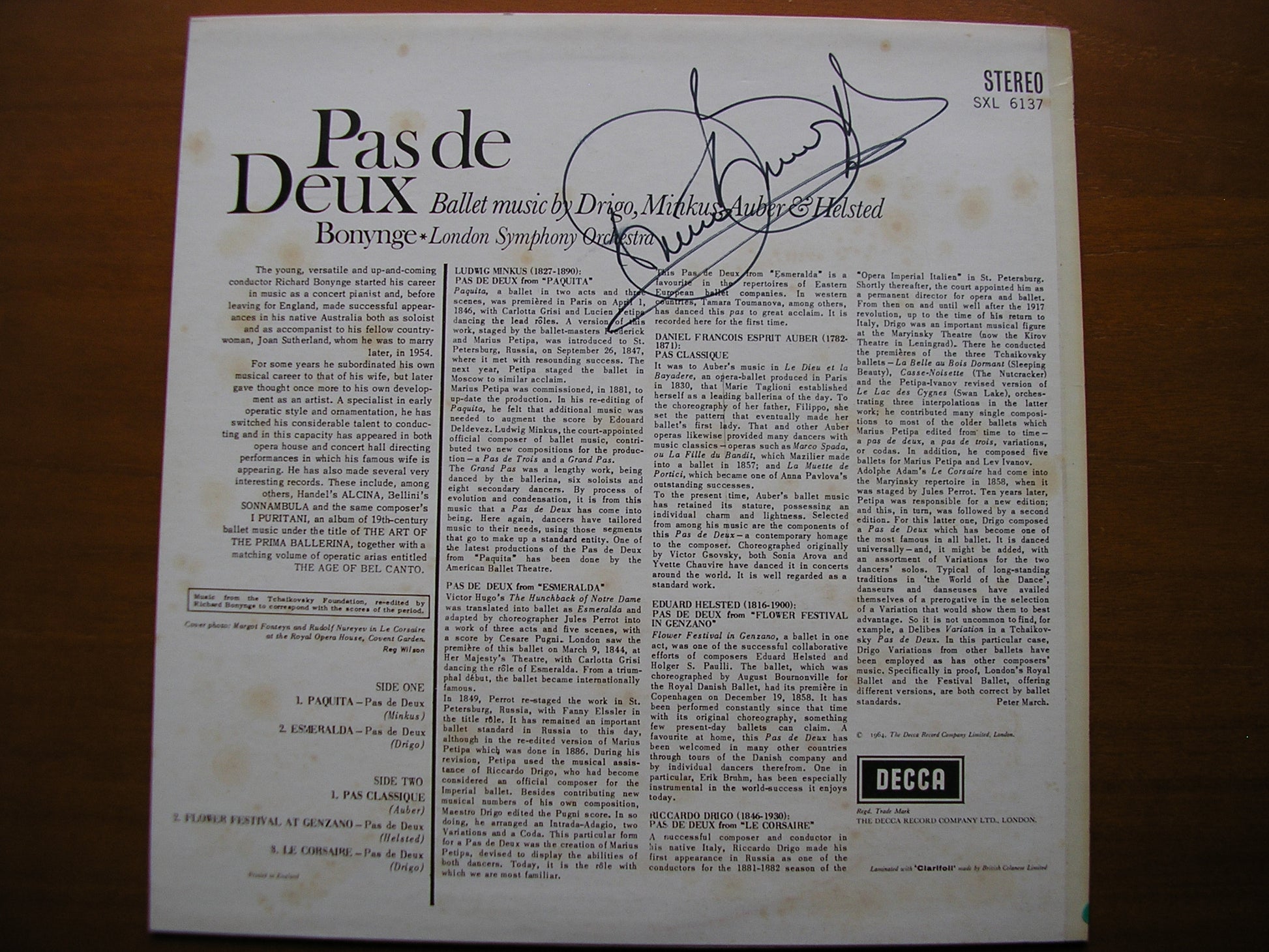 SXL 6137 PAS DE DEUX: BALLET MUSIC BY DRIGO / MINKUS / AUBER / HELSTED BONYNGE / LONDON SYMPHONY ED2