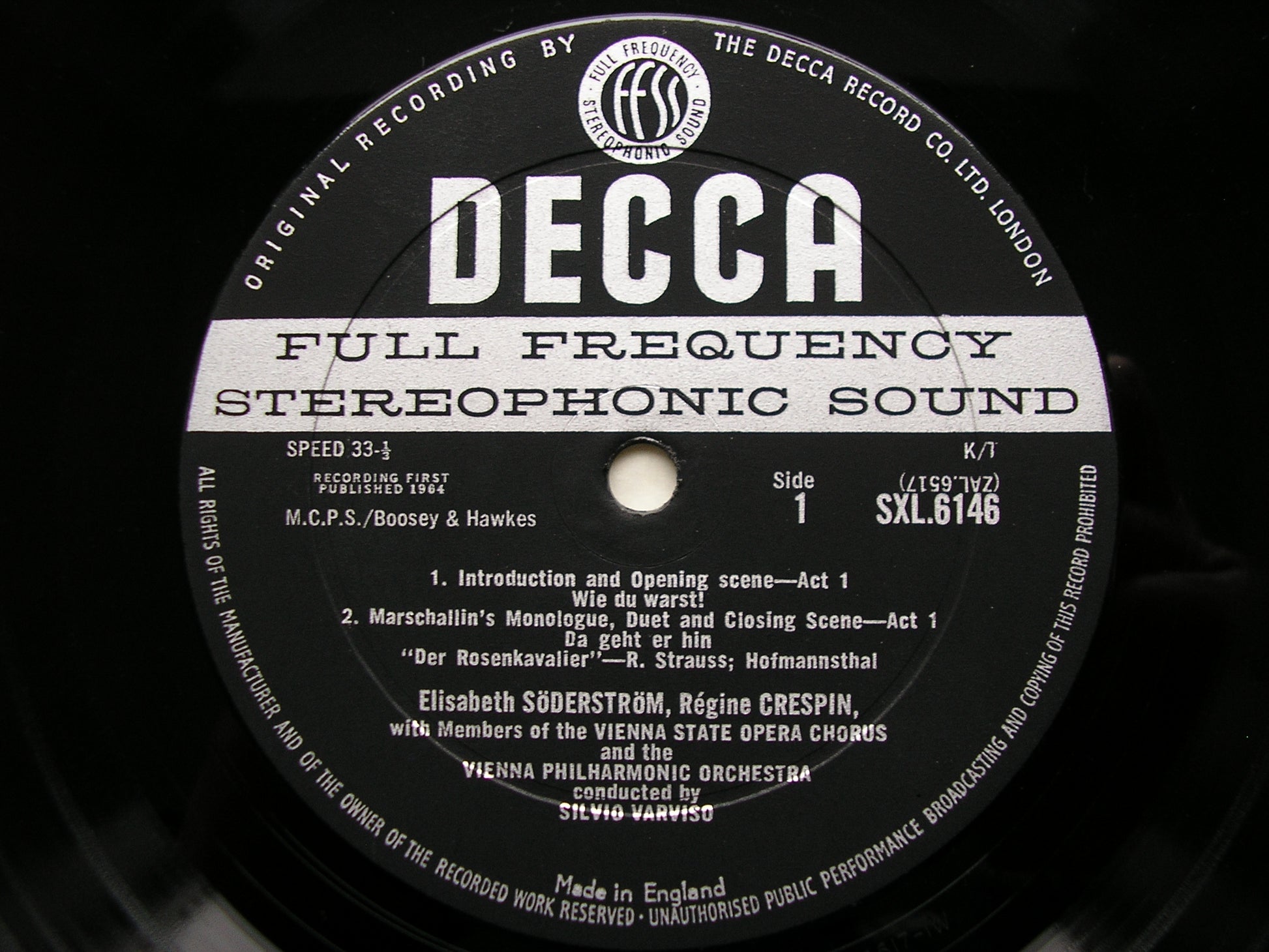 SXL 6146 STRAUSS: DER ROSENKAVALIER   excerpts     REGINE CRESPIN / HILDE GUEDEN / ELISABETH SODERSTROM / VIENNA PHILHARMONIC ORCHESTRA / SILVIO VARVISO