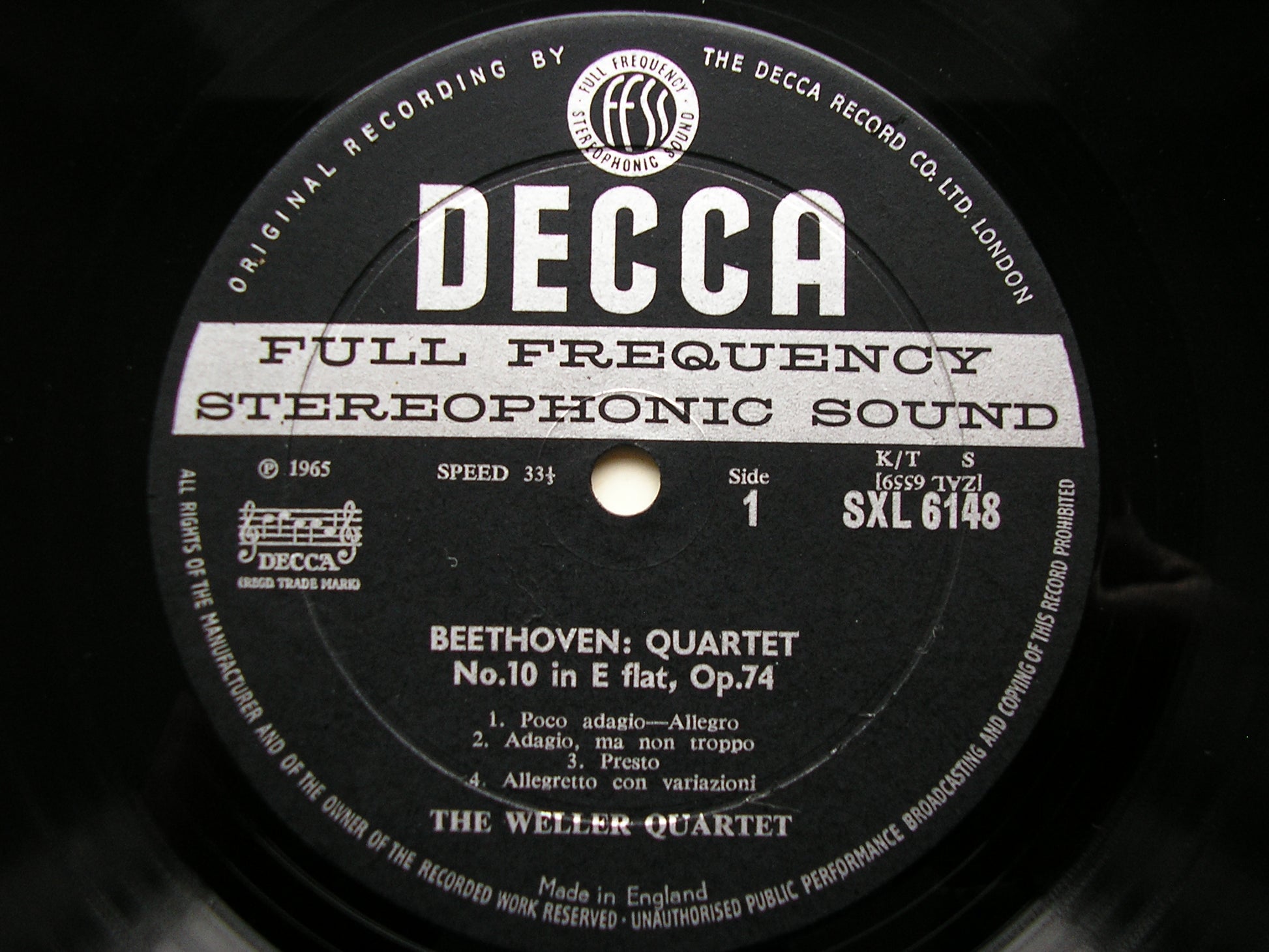 SXL 6148 BEETHOVEN: STRING QUARTETS Nos. 10 & 11 THE WELLER QUARTET ED1