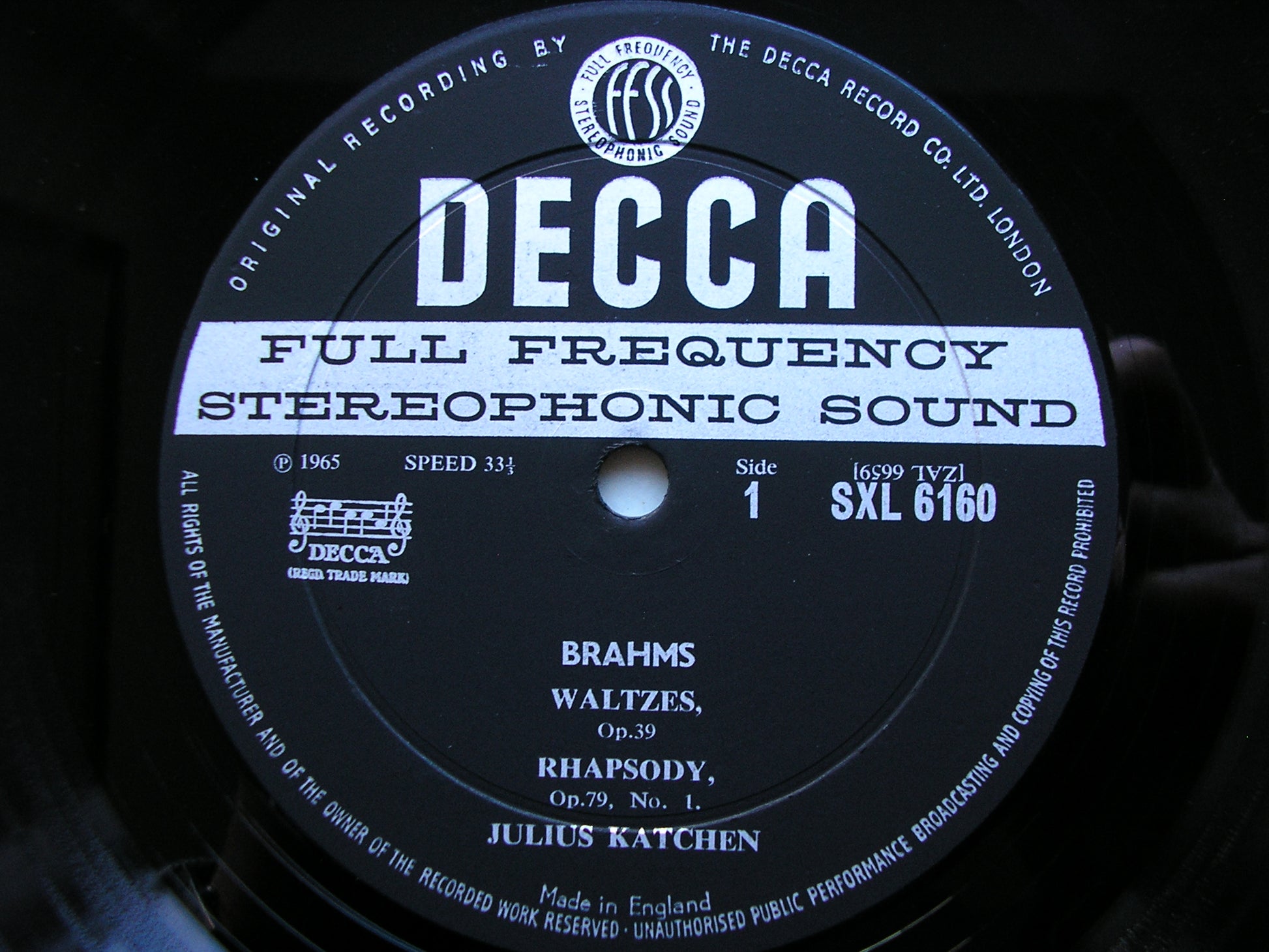 SXL 6160 BRAHMS: WALTZES Op. 30 / TWO RHAPSODIES Op. 79 / FOUR BALLADES Op. 10   JULIUS KATCHEN