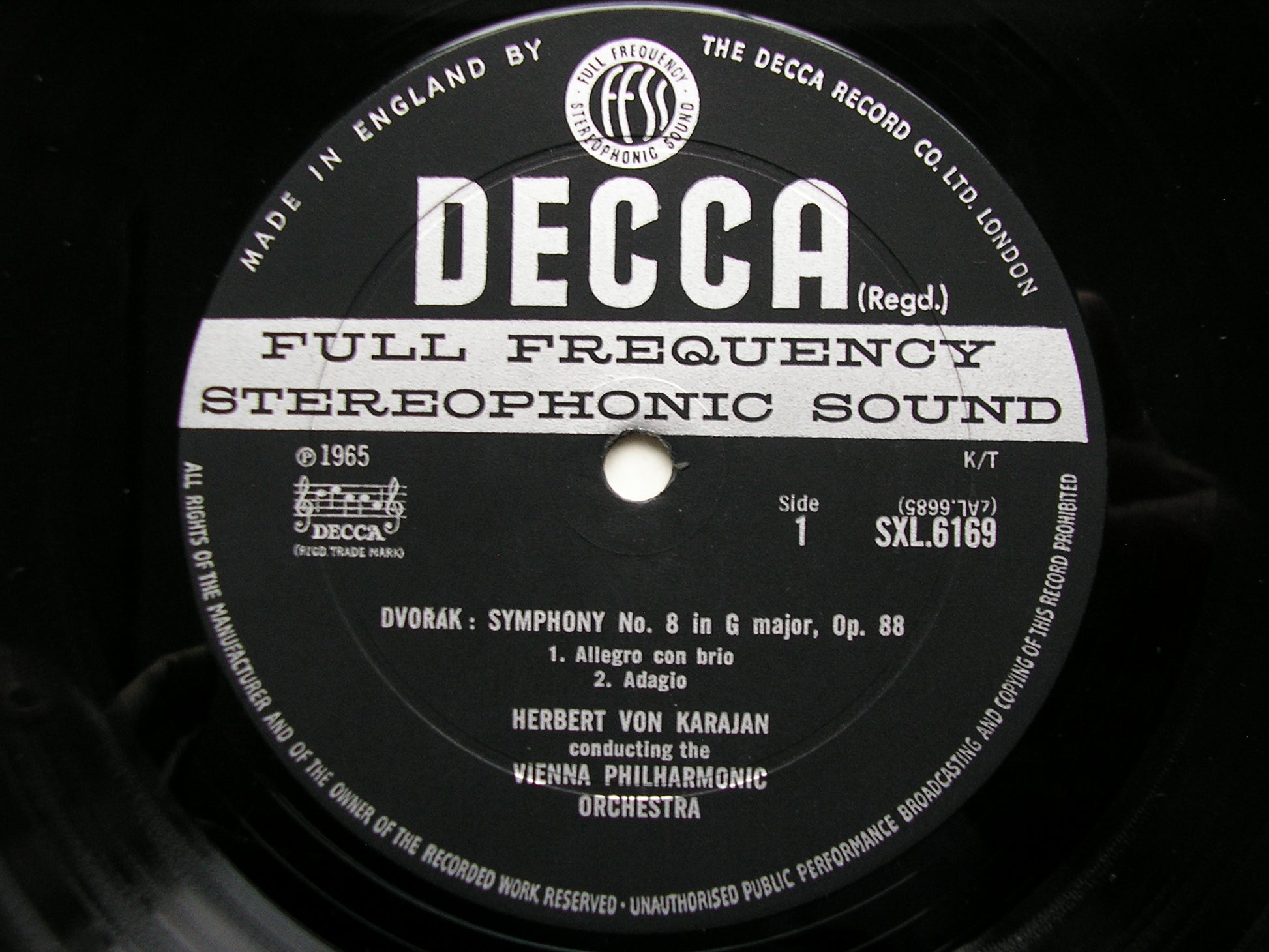 SXL 6169 DVORAK: SYMPHONY No. 8      HERBERT VON KARAJAN / VIENNA PHILHARMONIC ORCHESTRA