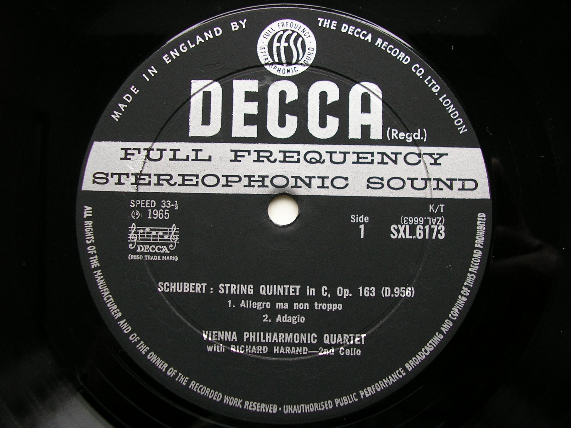 SXL 6173 SCHUBERT: STRING QUINTET D956 / STRING TRIO D471      VIENNA PHILHARMONIC QUARTET / RICHARD HARAND
