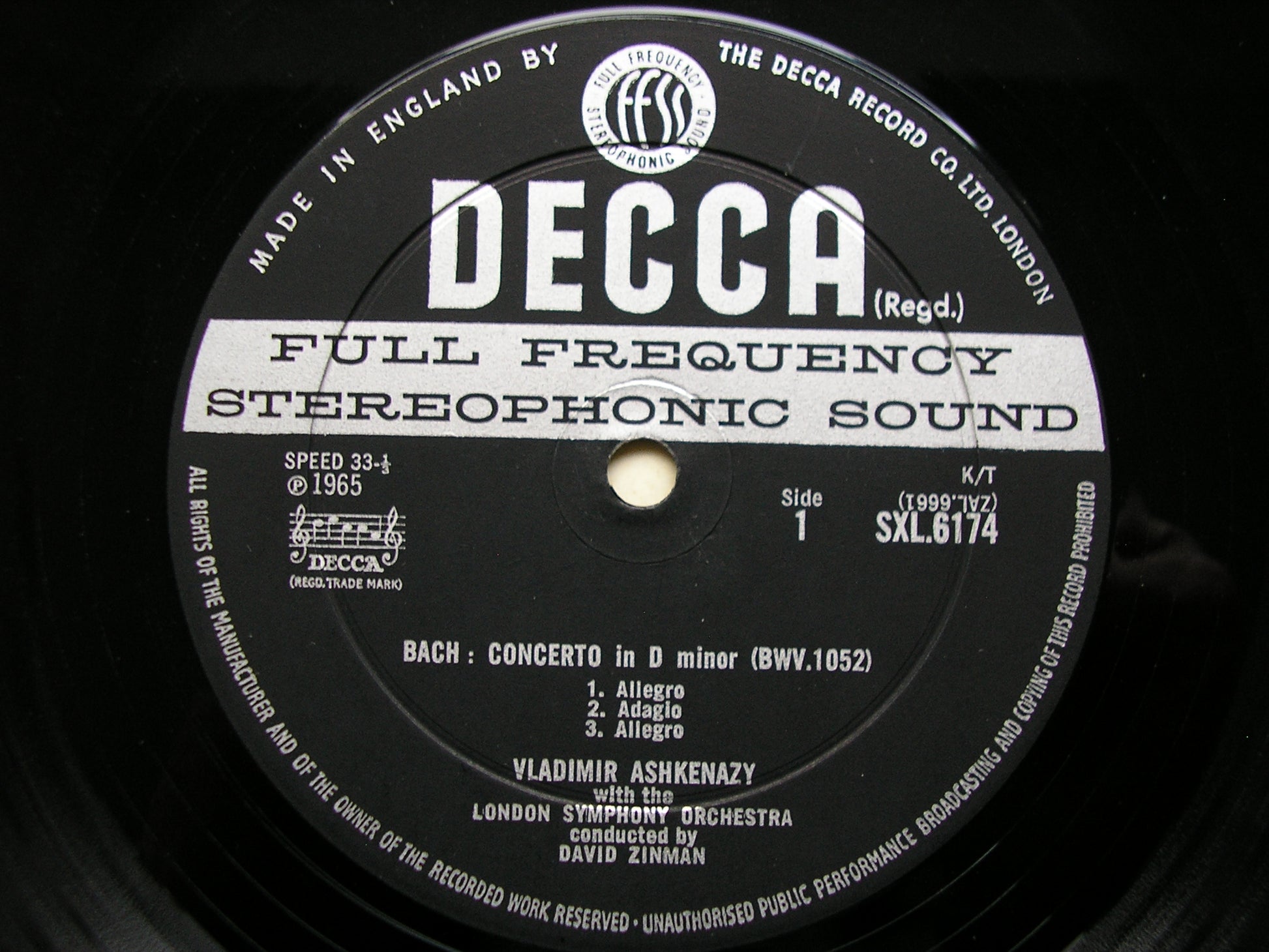 SXL 6174 BACH: CONCERTO in D / CHOPIN: PIANO CONCERTO No. 2 ASHKENAZY / LONDON SYMPHONY / ZINMAN ED2