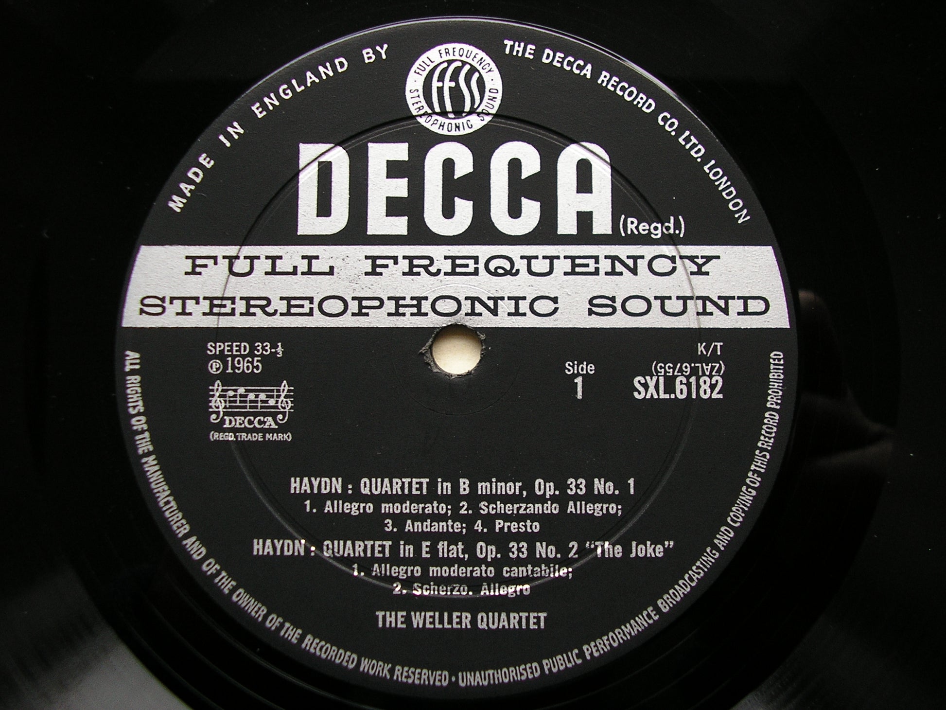 SXL 6182 HAYDN: THREE STRING QUARTETS Op. 33 THE WELLER QUARTET ED2