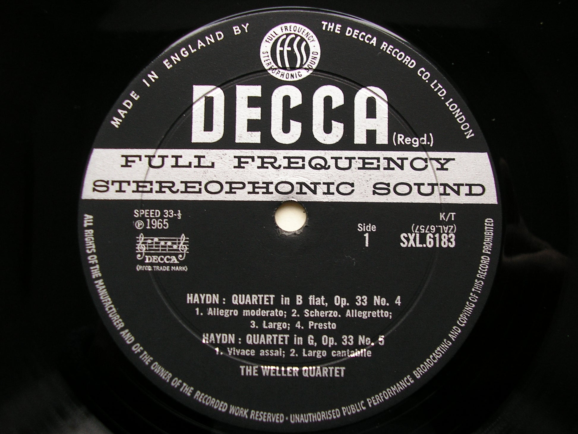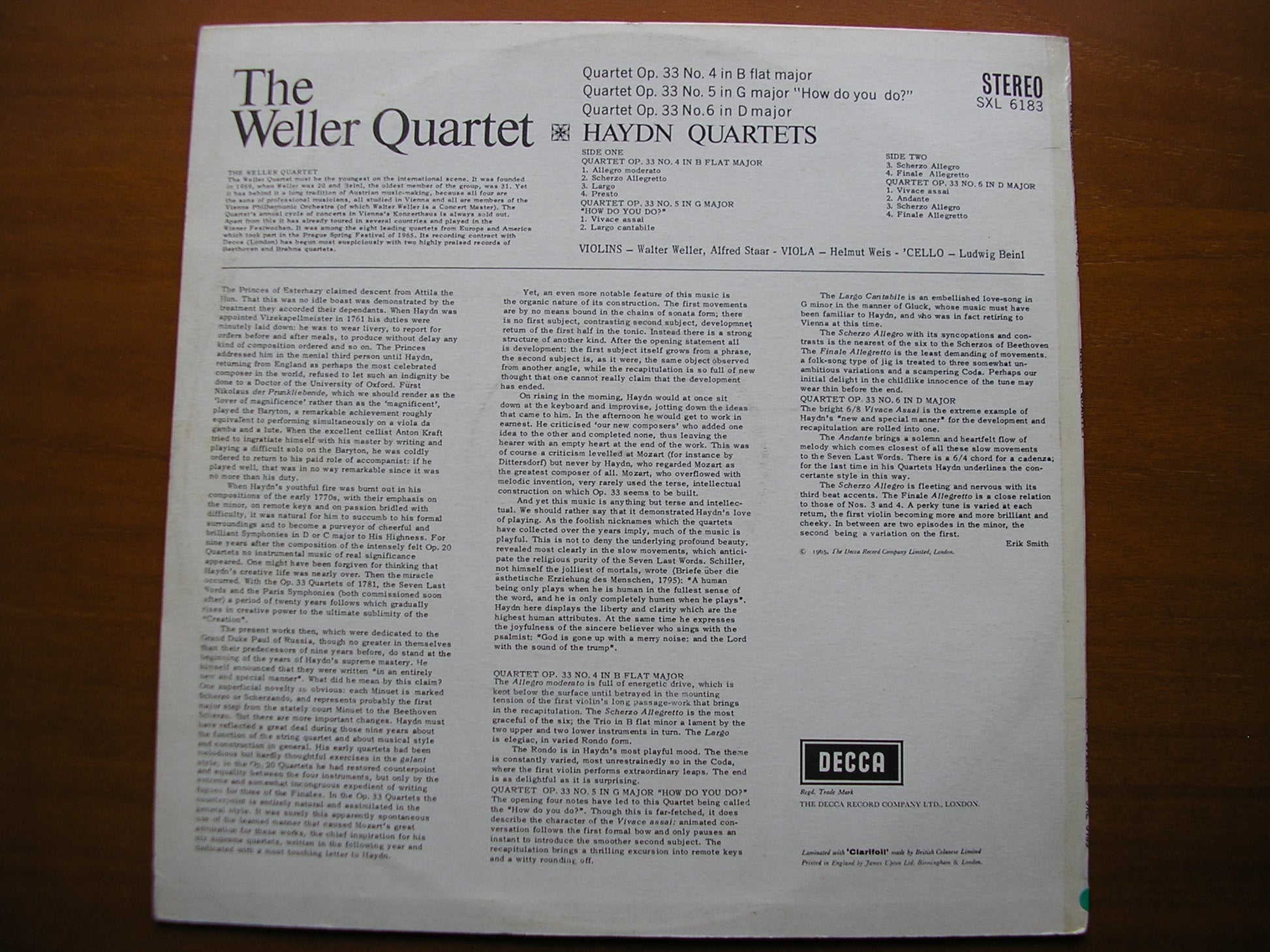 SXL 6183 HAYDN: THREE STRING QUARTETS Op. 33 THE WELLER QUARTET ED2