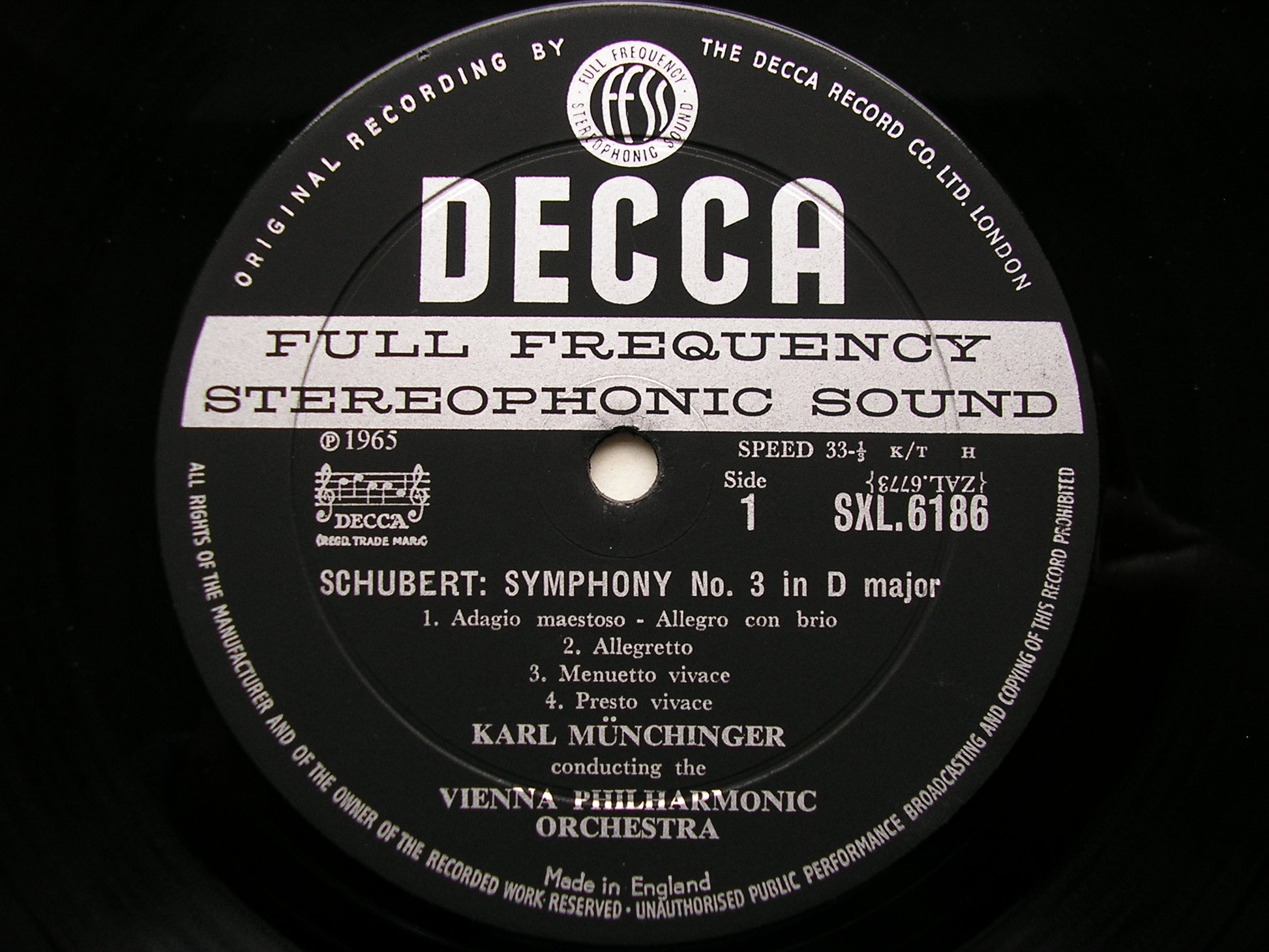 SXL 6186 SCHUBERT: SYMPHONIES Nos. 3 & 6     KARL MUNCHINGER / VIENNA PHILHARMONIC ORCHESTRA