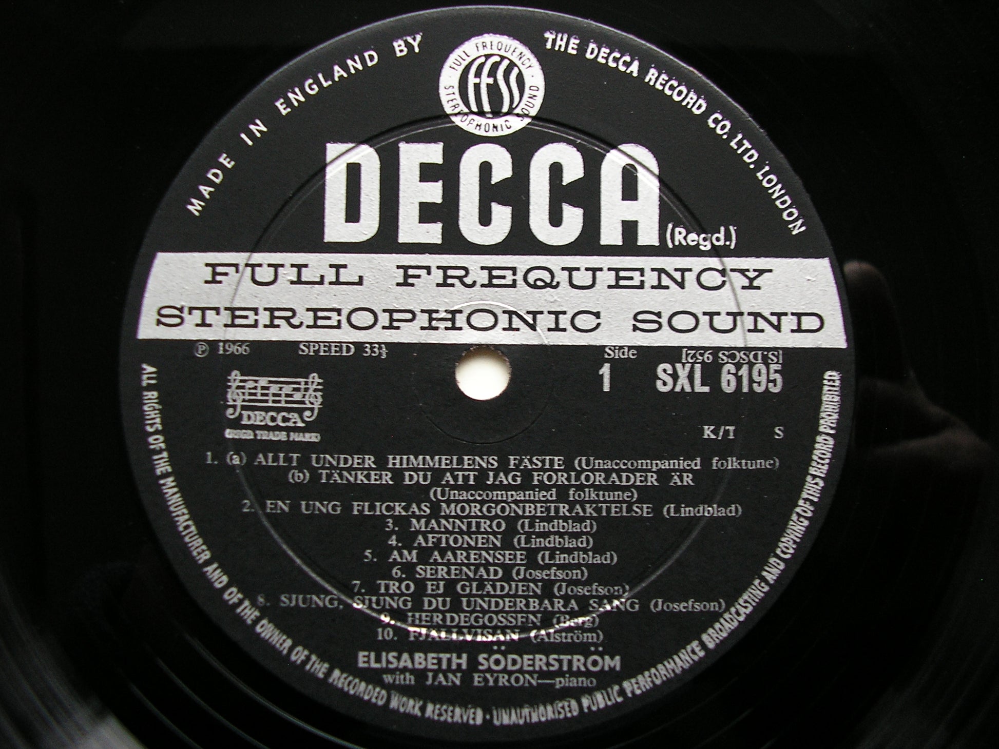 SXL 6195 AHLSTROM / BENEDICT / SCHUMANN / MENDELSSOHN / LINDBLAD / BERG    ELISABETH SODERSTROM / JAN EYRON