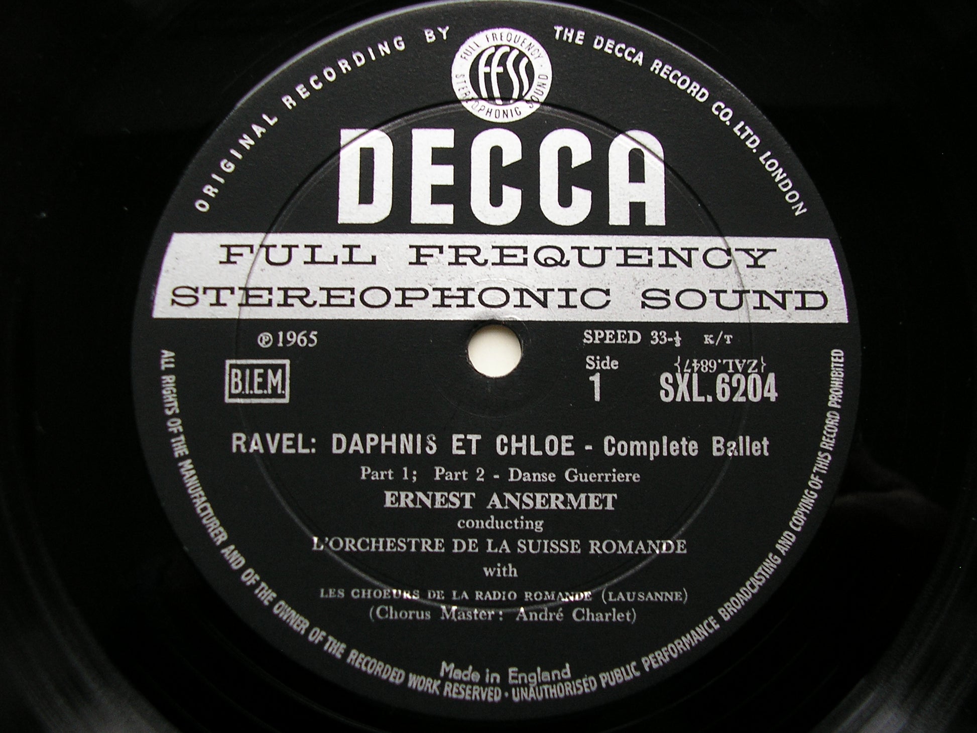 SXL 6204 RAVEL: DAPHNIS & CHLOE     ERNEST ANSERMET / SUISSE ROMANDE ORCHESTRA