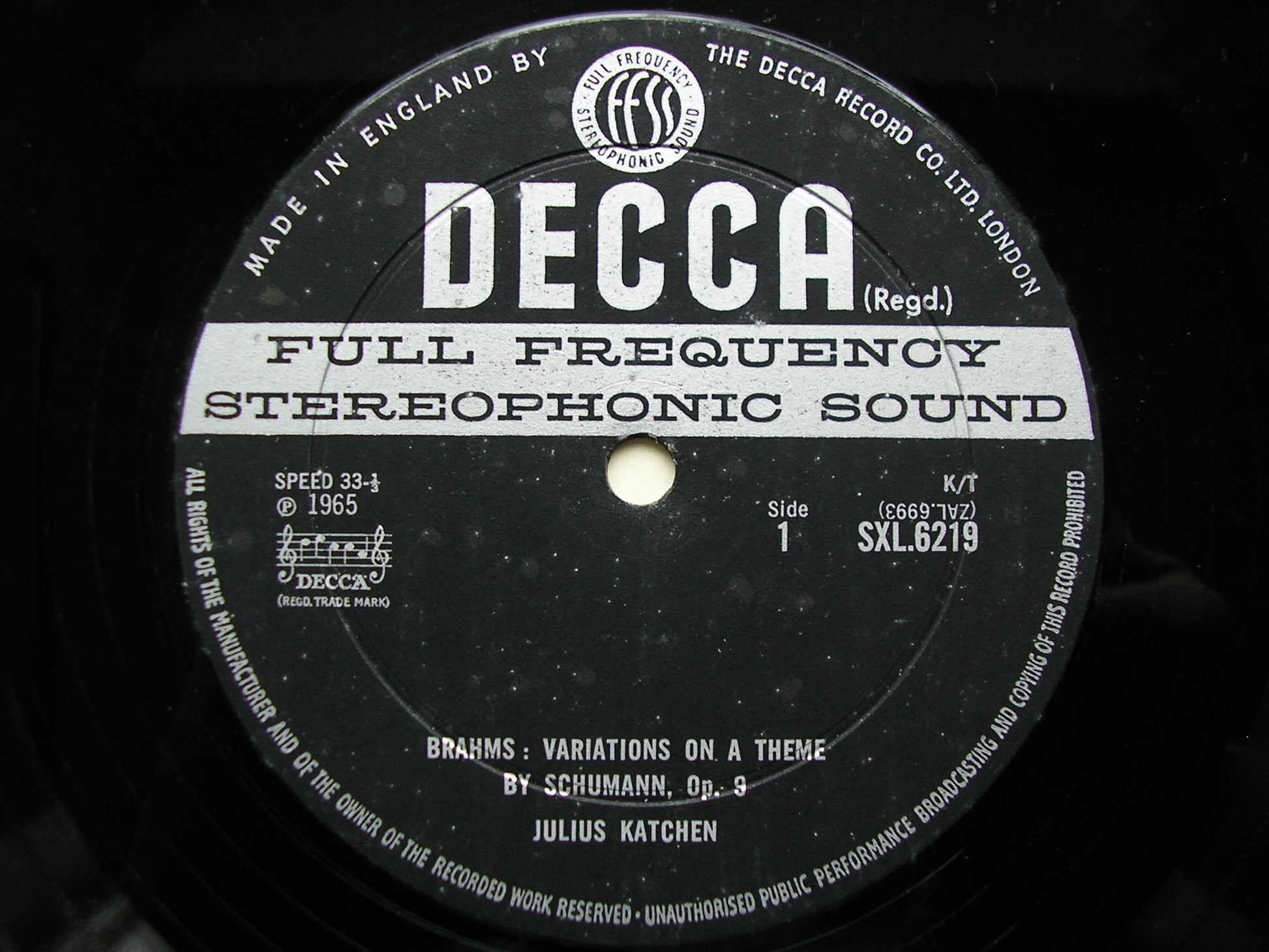 SXL 6219 BRAHMS: SCHUMANN VARIATIONS / VARIATIONS Op. 21     JULIUS KATCHEN