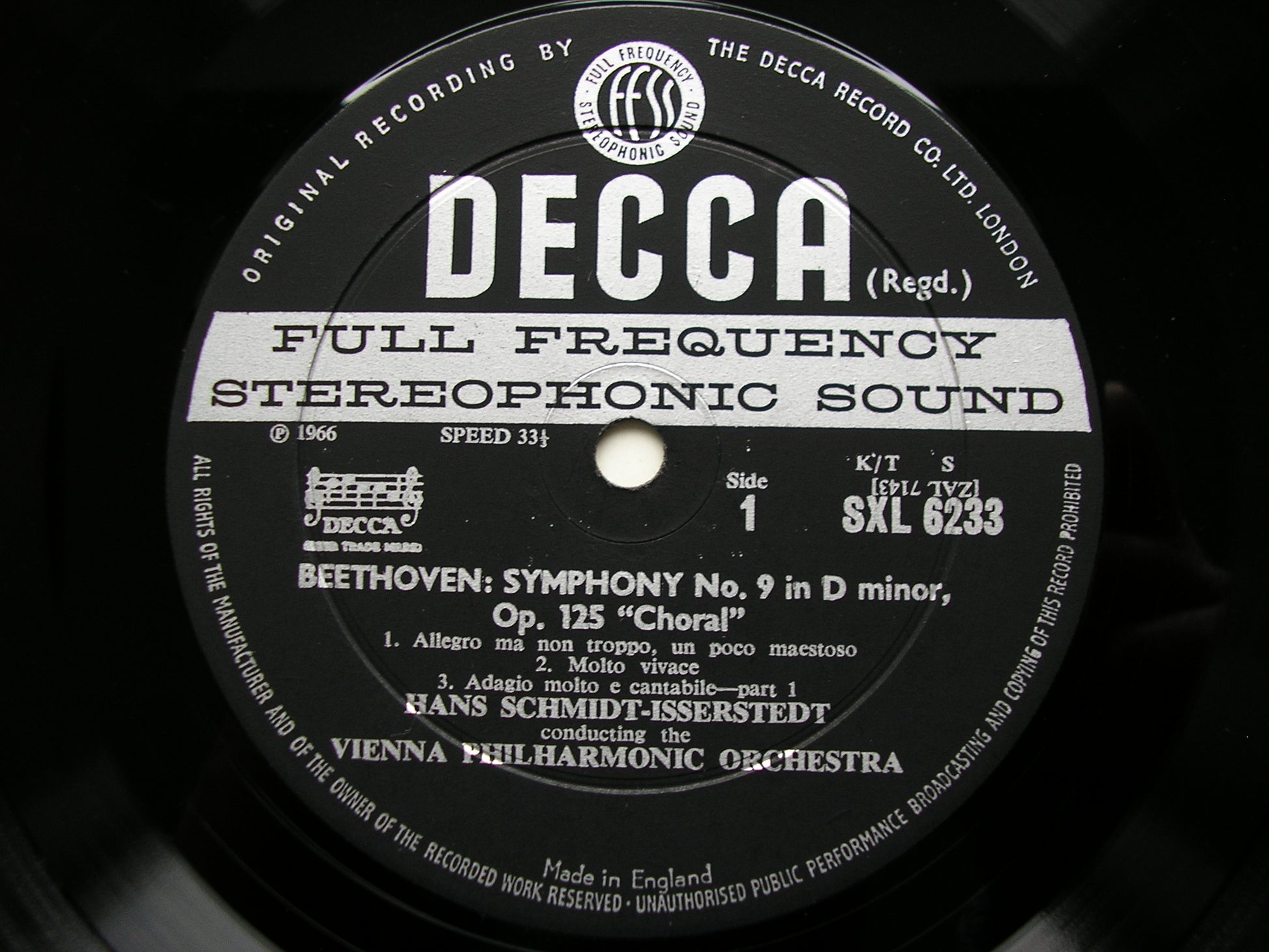 SXL 6233 BEETHOVEN: SYMPHONY No. 9 'Choral' SOLOISTS / VIENNA PHILHARMONIC / SCHMIDT-ISSERSTEDT ED1