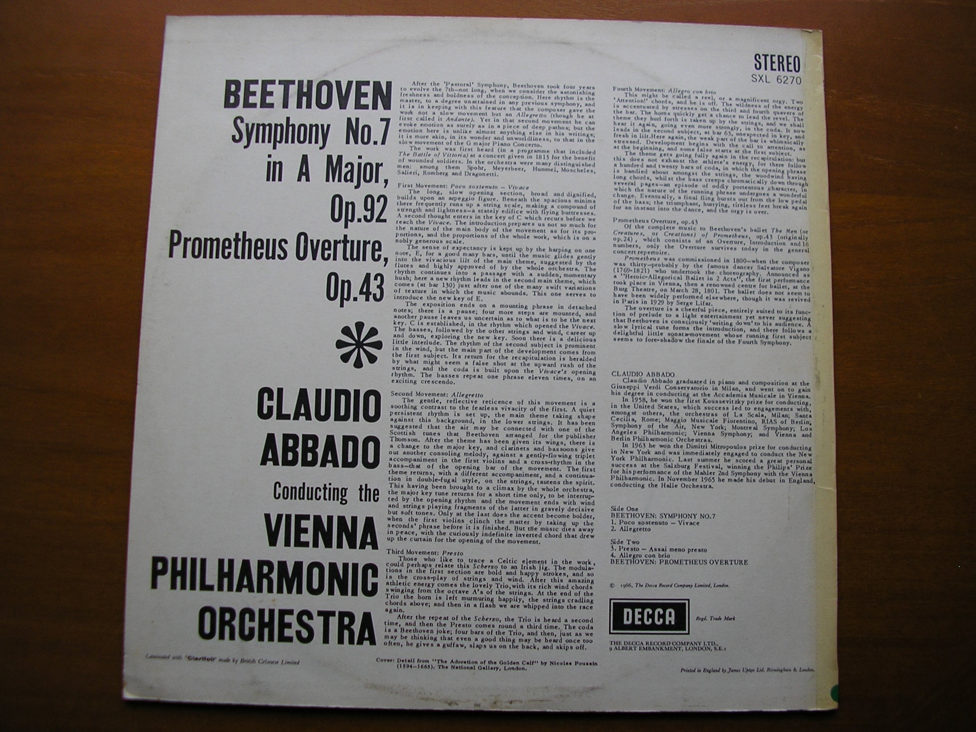SXL 6270 BEETHOVEN: SYMPHONY No. 7 / PROMETHEUS OVERTURE     CLAUDIO ABBADO / VIENNA PHILHARMONIC ORCHESTRA