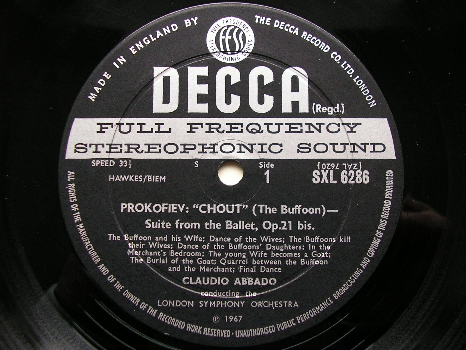 SXL 6286 PROKOFIEV: ROMEO & JULIET / CHOUT (The Buffoon)     CLAUDIO ABBADO / LONDON SYMPHONY ORCHESTRA