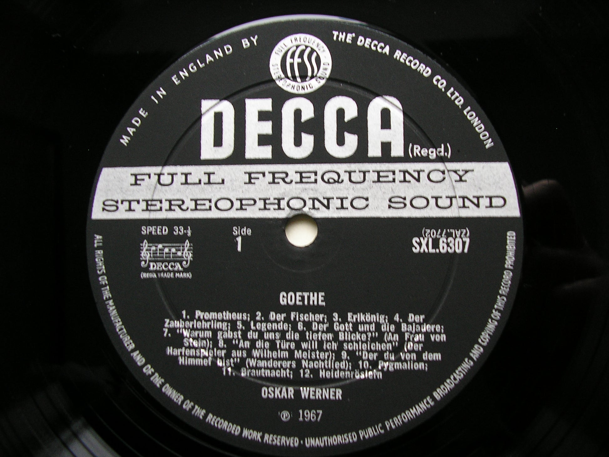 SXL 6307 OSKAR WERNER READING POEMS BY GOETHE & SCHILLER ED2
