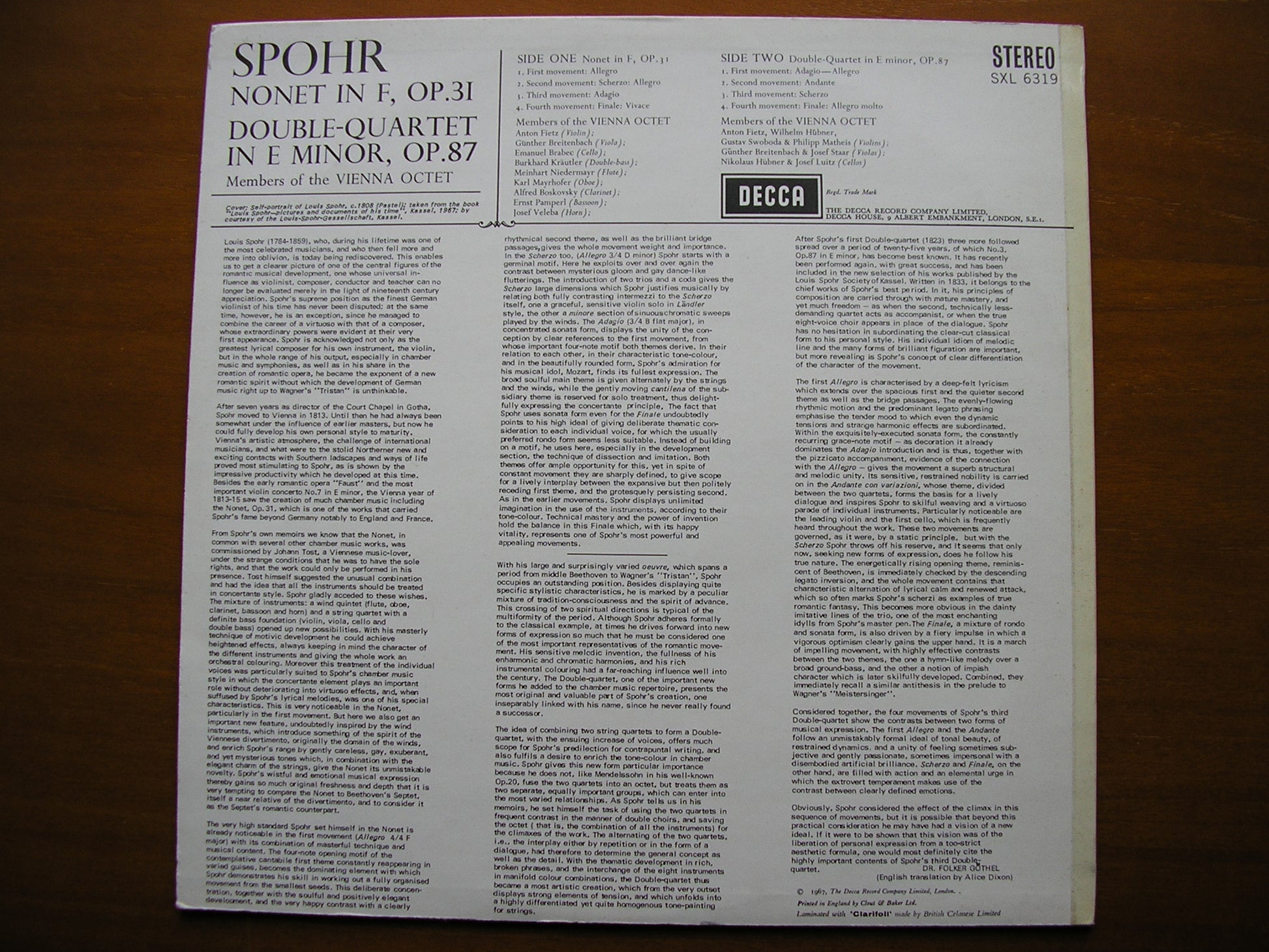 SXL 6319 SPOHR: NONET in F / DOUBLE QUARTET in E MEMBERS OF THE VIENNA OCTET ED2