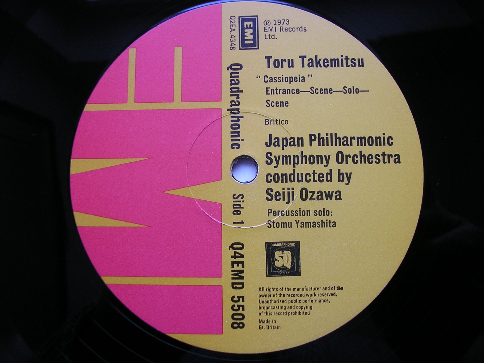 Q4 EMD 5508  TORU TAKEMITSU: 'Cassiopeia' for Percussion & Orchestra / MAKI ISHII: Music for Gagaku                     STOMU YAMASHTA / GAGAKU ENSEMBLE / SEIJI OZAWA / JAPAN PHILHARMONIC ORCHESTRA