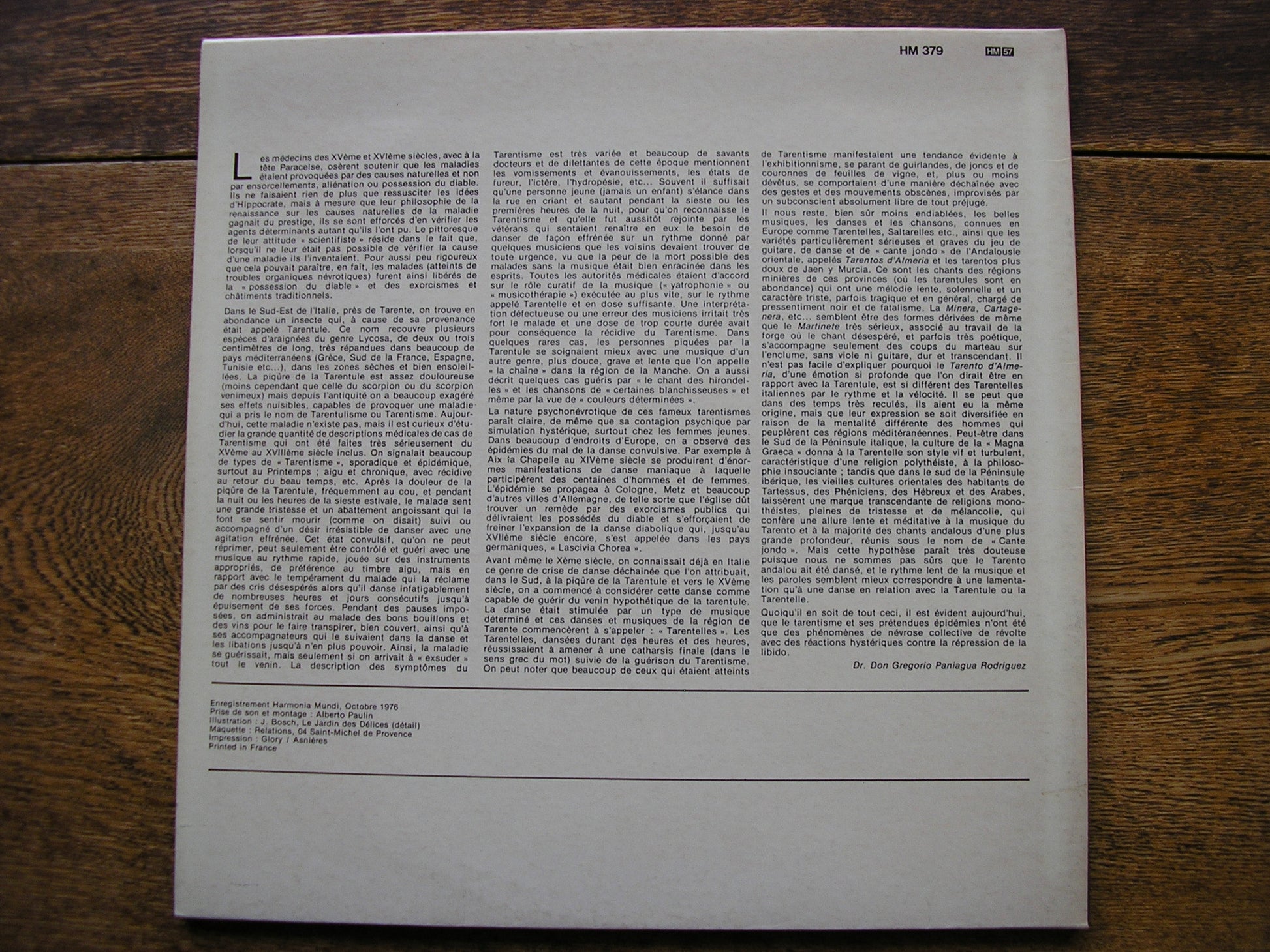 HM 379  TARANTULE - TARANTELLE   GREGORIO PANIAGUA / ATRIUM MUSICAE de MADRID