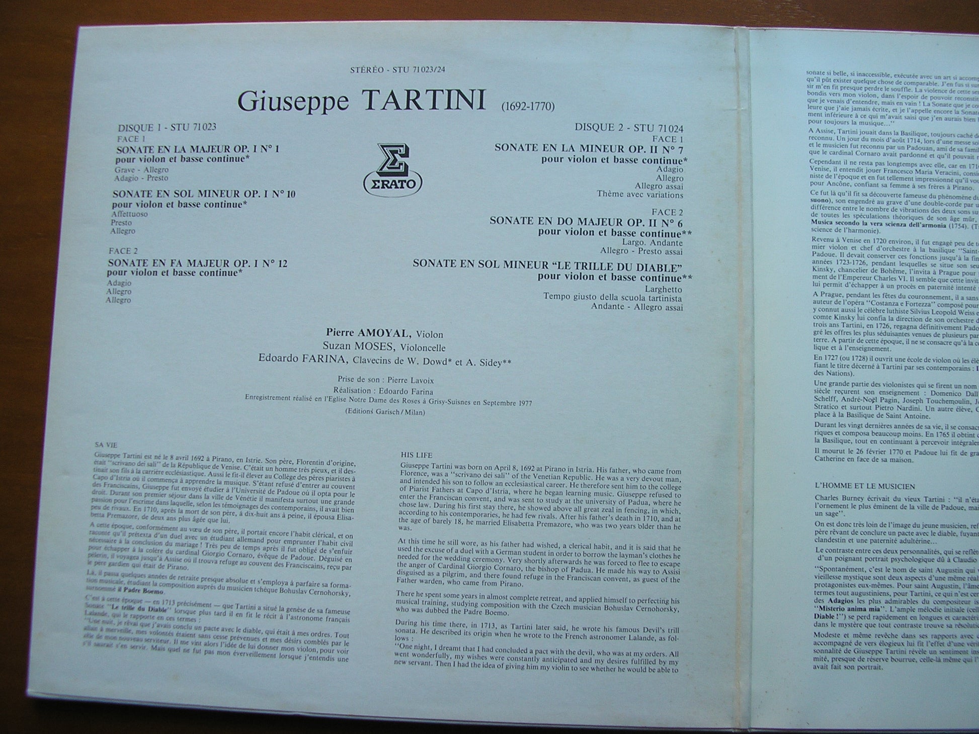 TARTINI: SIX SONATAS FOR VIOLIN, CELLO & HARPSICHORD PIERRE AMOYAL / SUSAN MOSES / EDOARDO FARINA STU 71023 / 4