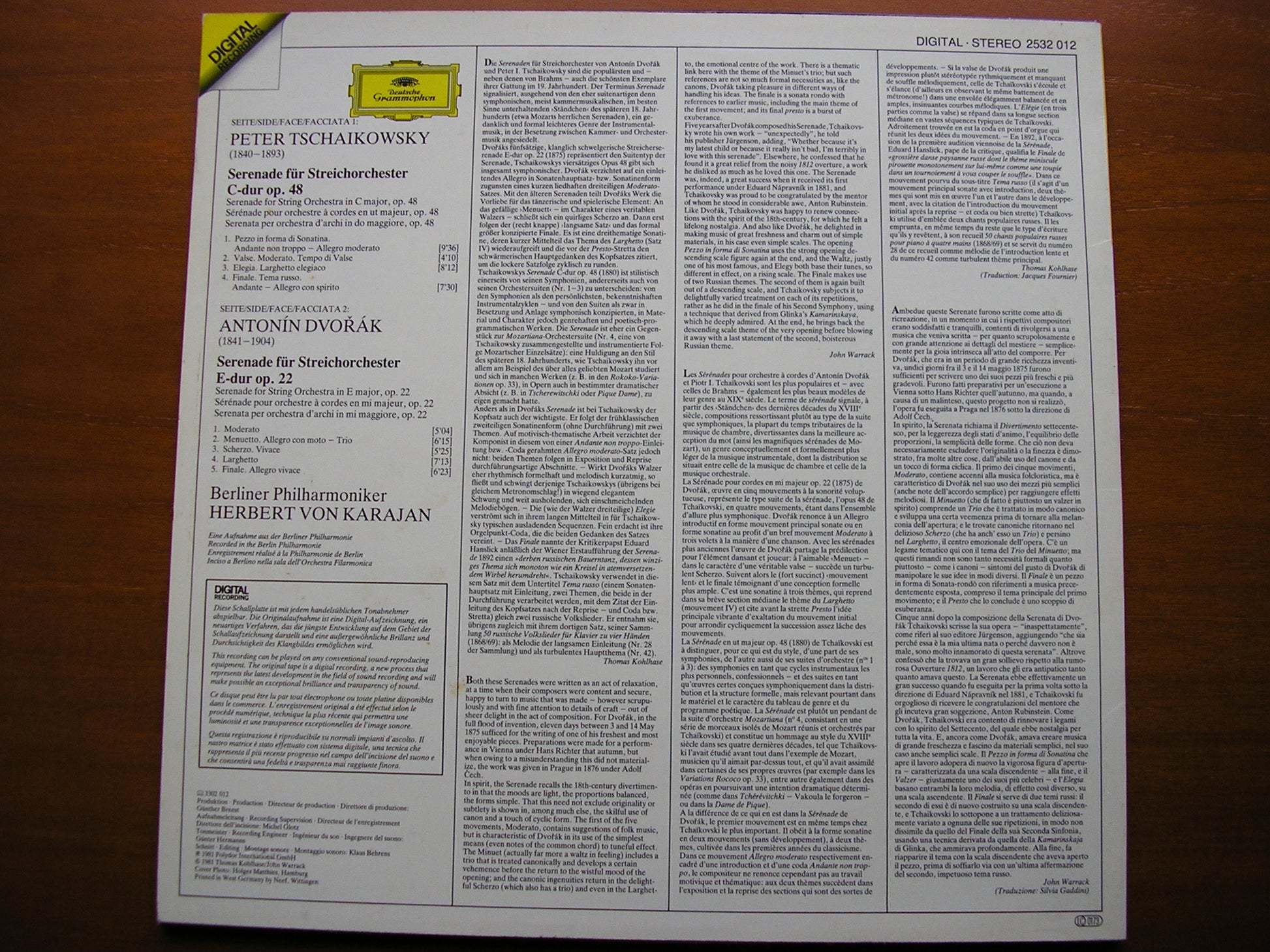 2532 012  DVORAK & TCHAIKOVSKY: SERENADES FOR STRINGS    HERBERT VON KARAJAN / BERLIN PHILHARMONIC ORCHESTRA