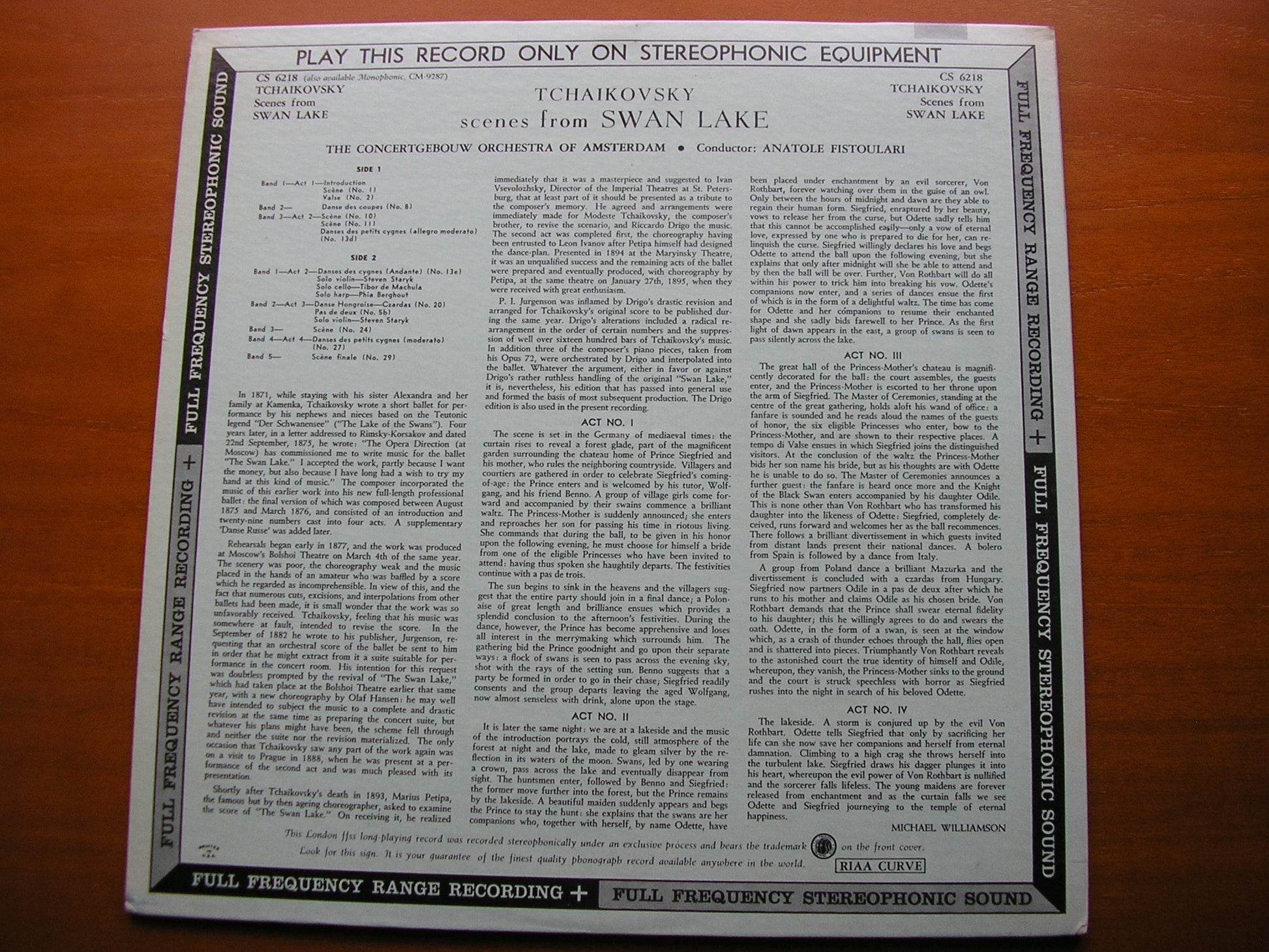 CS 6218  TCHAIKOVSKY: SWAN LAKE Scenes    ANATOLE FISTOULARI / CONCERTGEBOUW ORCHESTRA AMSTERDAM