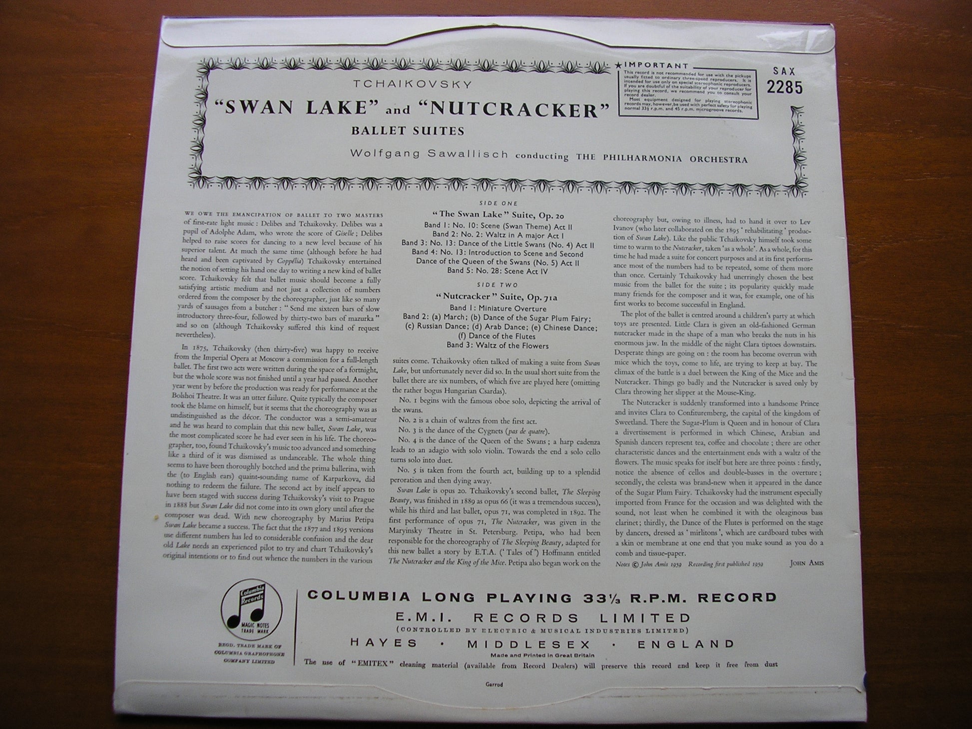 SAX 2285  TCHAIKOVSKY: SWAN LAKE Suite / NUTCRACKER Suite     WOLFGANG SAWALLISCH / PHILHARMONIA ORCHESTRA