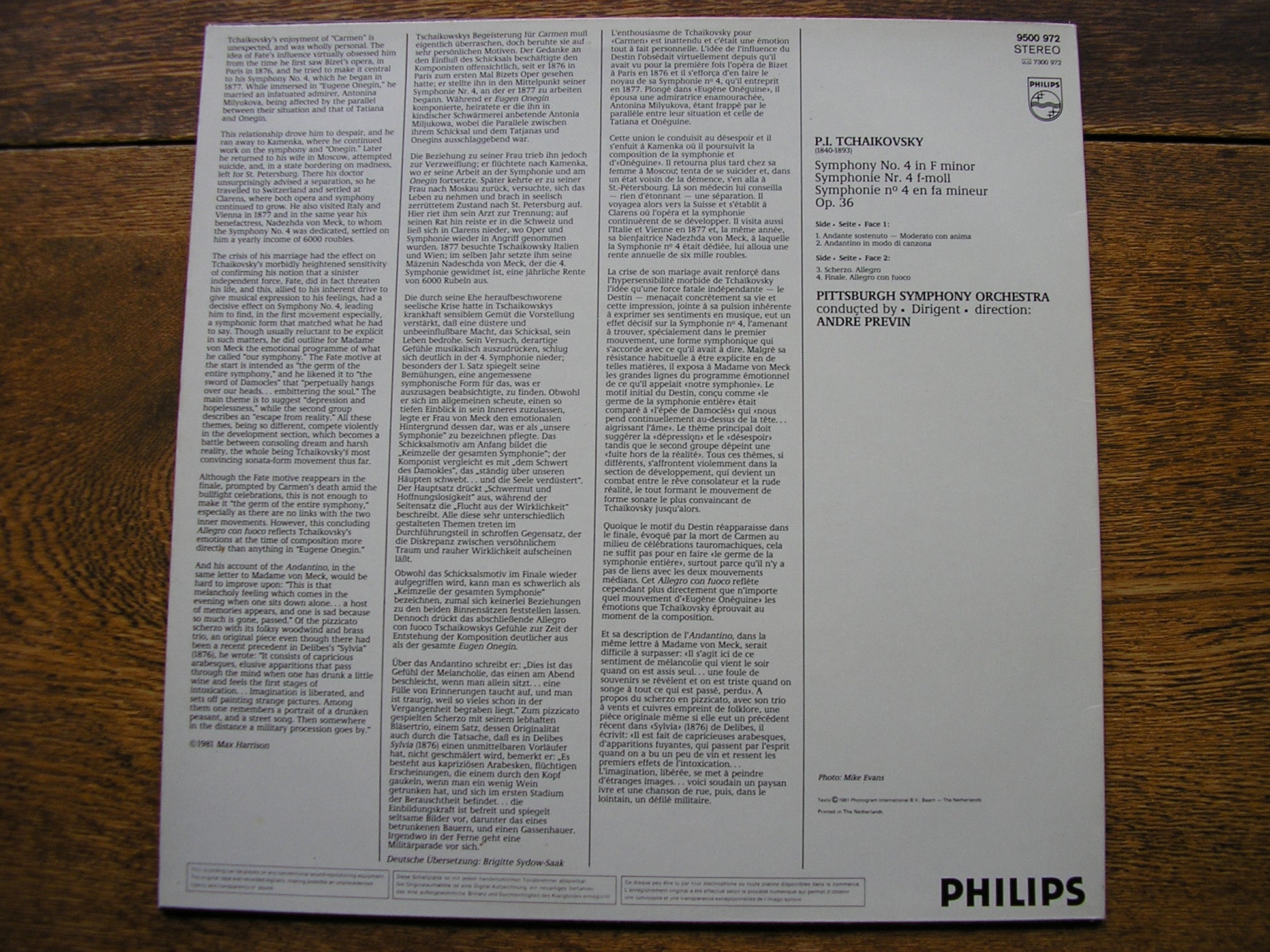 9500 972  TCHAIKOVSKY: SYMPHONY No. 4   ANDRE PREVIN / PITTSBURGH SYMPHONY ORCHESTRA