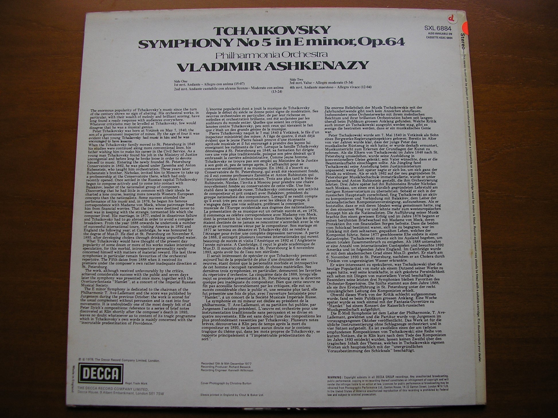 SXL 6884  TCHAIKOVSKY: SYMPHONY No. 5    VLADIMIR ASHKENAZY / PHILHARMONIA ORCHESTRA