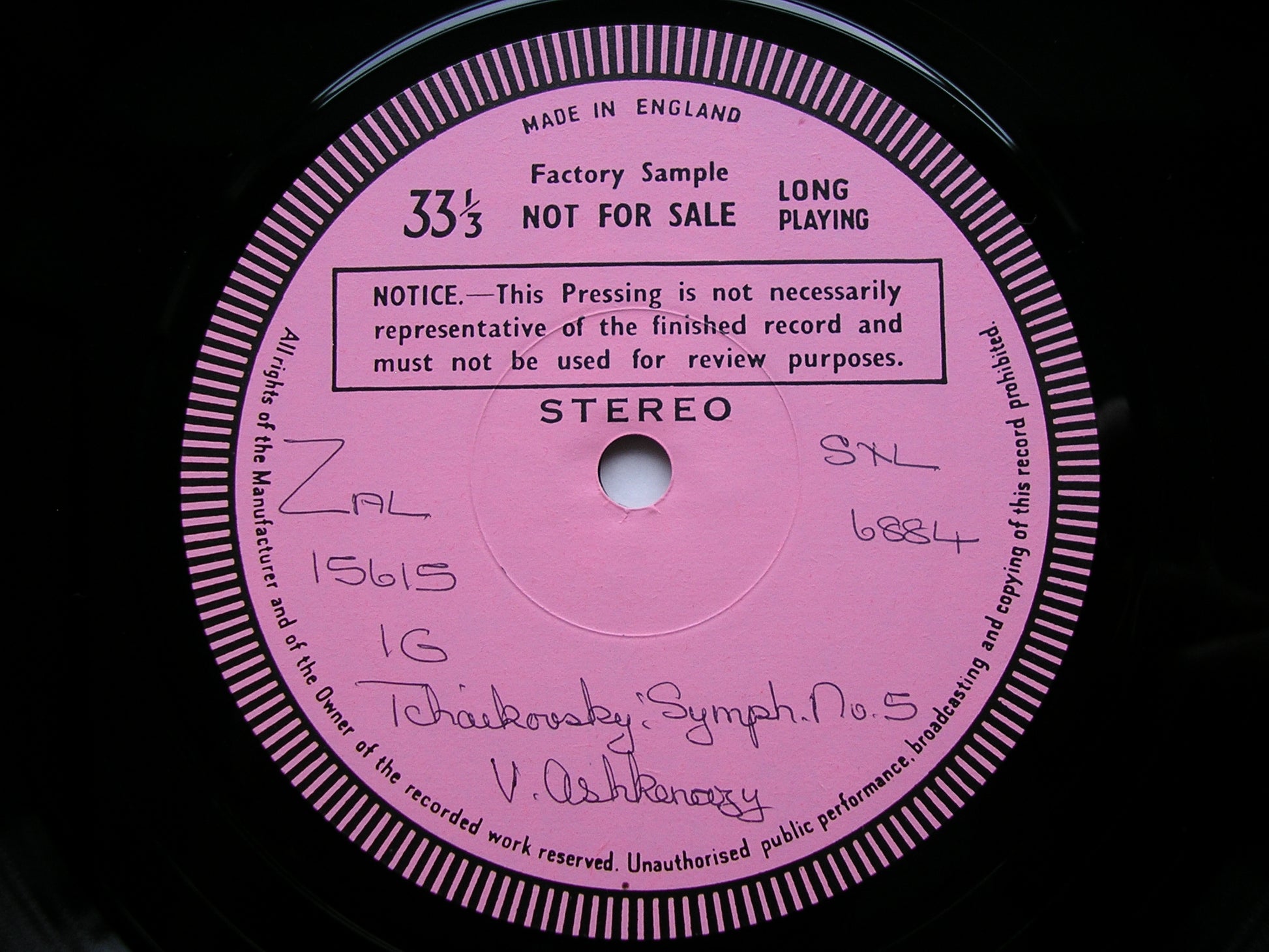 TCHAIKOVSKY: SYMPHONY No. 5 ASHKENAZY / PHILHARMONIA ORCHESTRA test pressing SXL 6884
