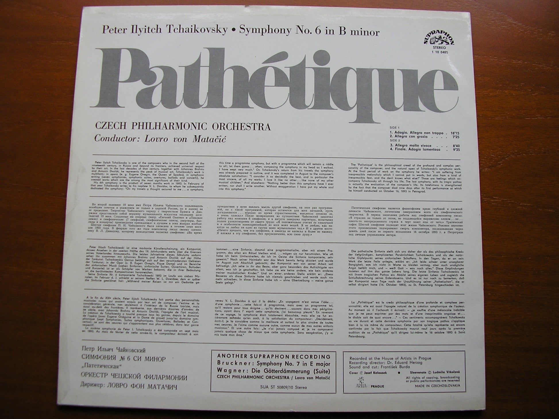 110 0485  TCHAIKOVSKY: SYMPHONY No. 6 'Pathetique'    LOVRO VON MATACIC / CZECH PHILHARMONIC ORCHESTRA