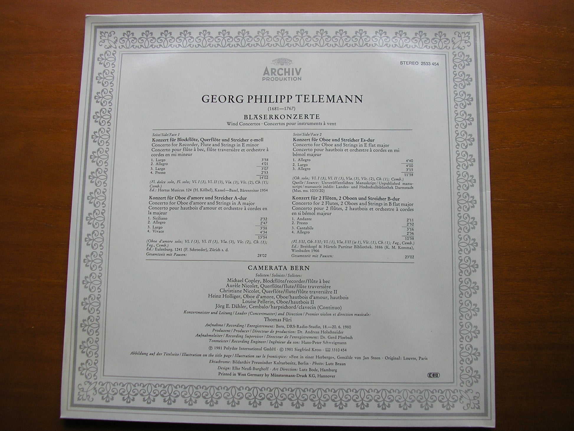 2533 421  TELEMANN: CHAMBER CONCERTOS   MUSICA ANTIQUA COLOGNE / REINHARD GOEBEL