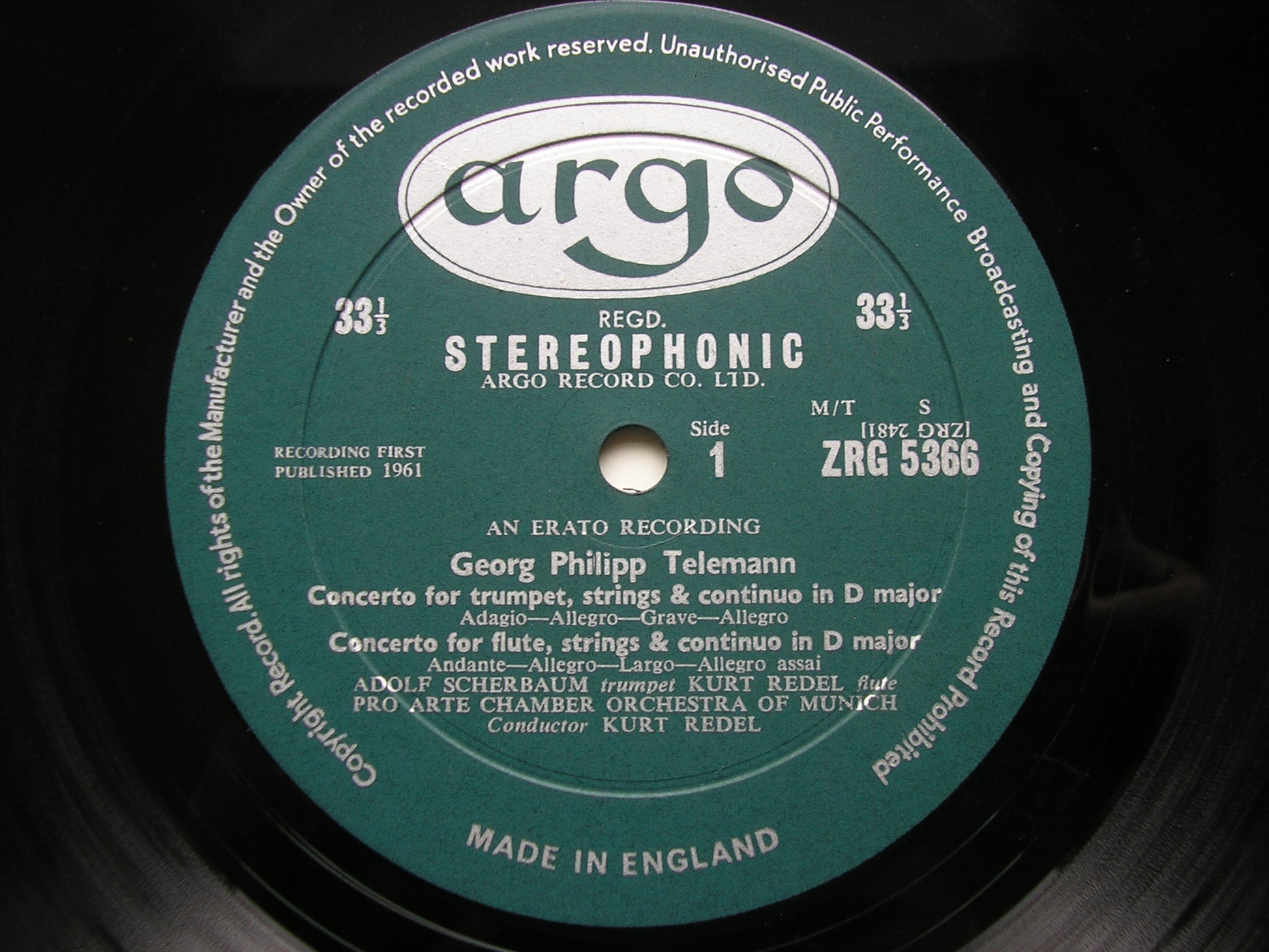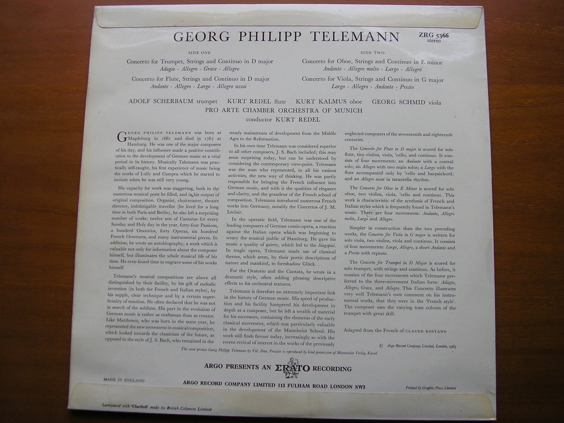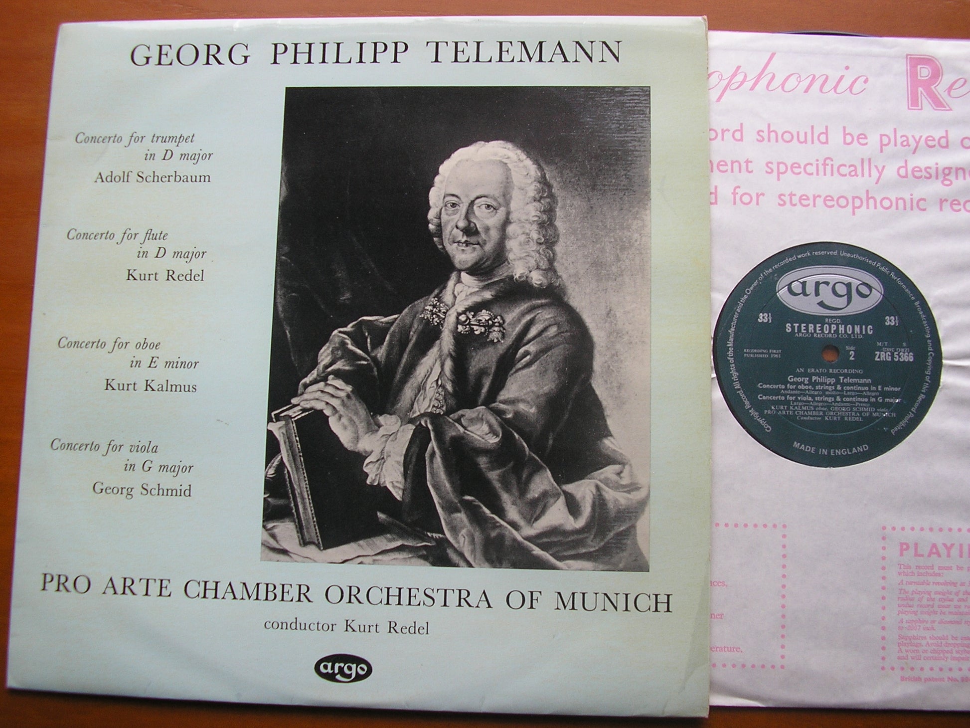 ZRG 5366  TELEMANN: CONCERTOS FOR TRUMPET / FLUTE / OBOE / VIOLA    KURT REDEL / GEORGB SCHMID / KURT KALMUS / ADOLF SCHERBAUM / MUNICH PRO ARTE ORCHESTRA / KURT REDEL