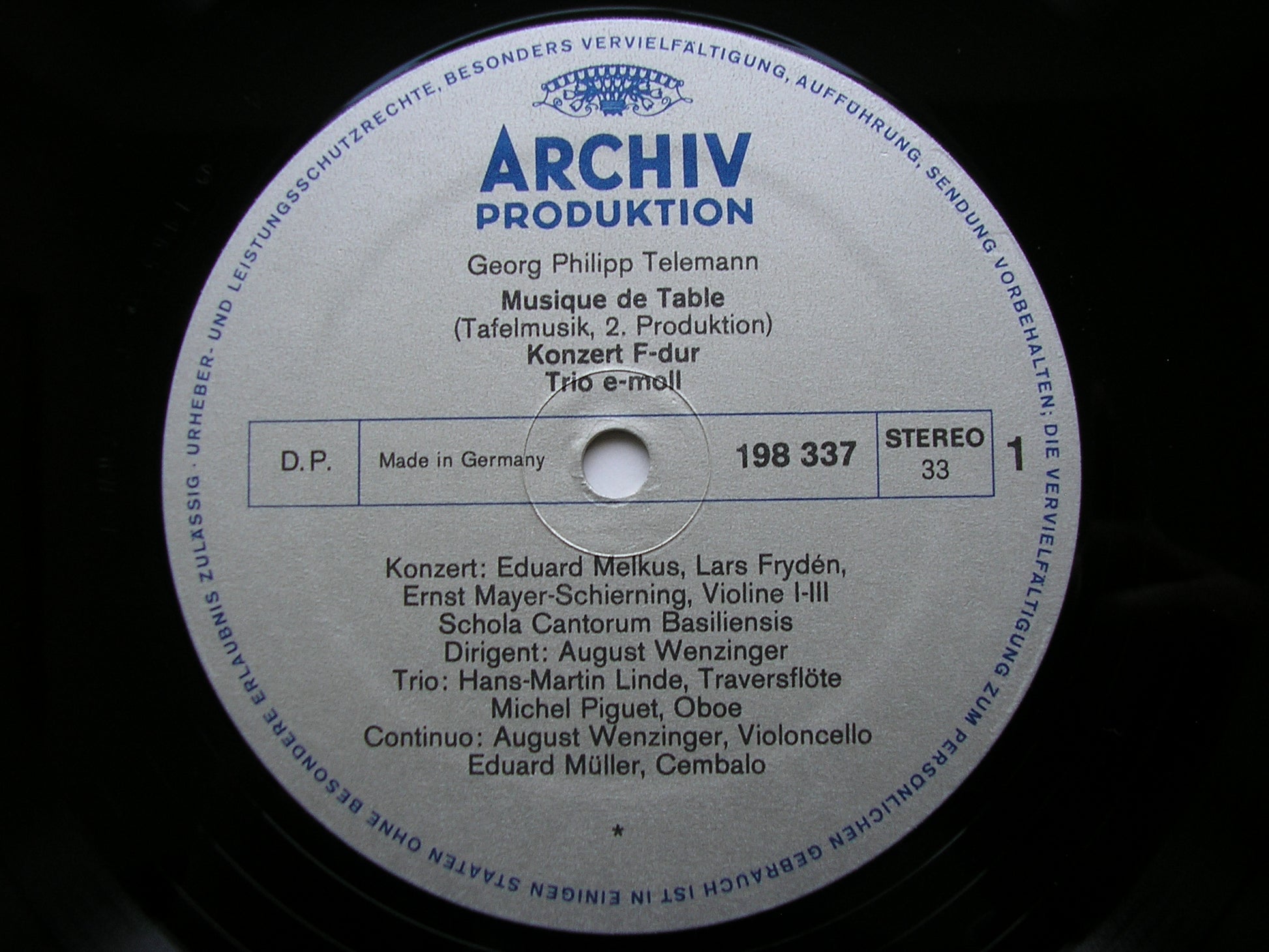 2708 009  TELEMANN: TAFELMUSIK  Production 2        SCHOLA CANTORUM BASILIENSIS / AUGUST WENZINGER