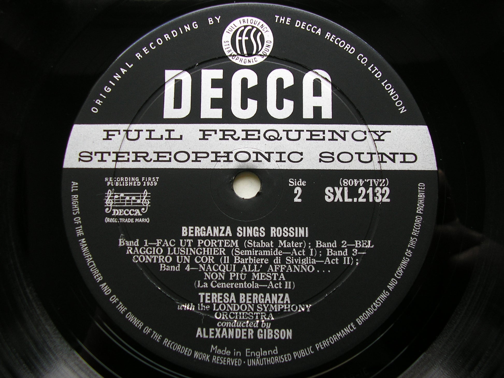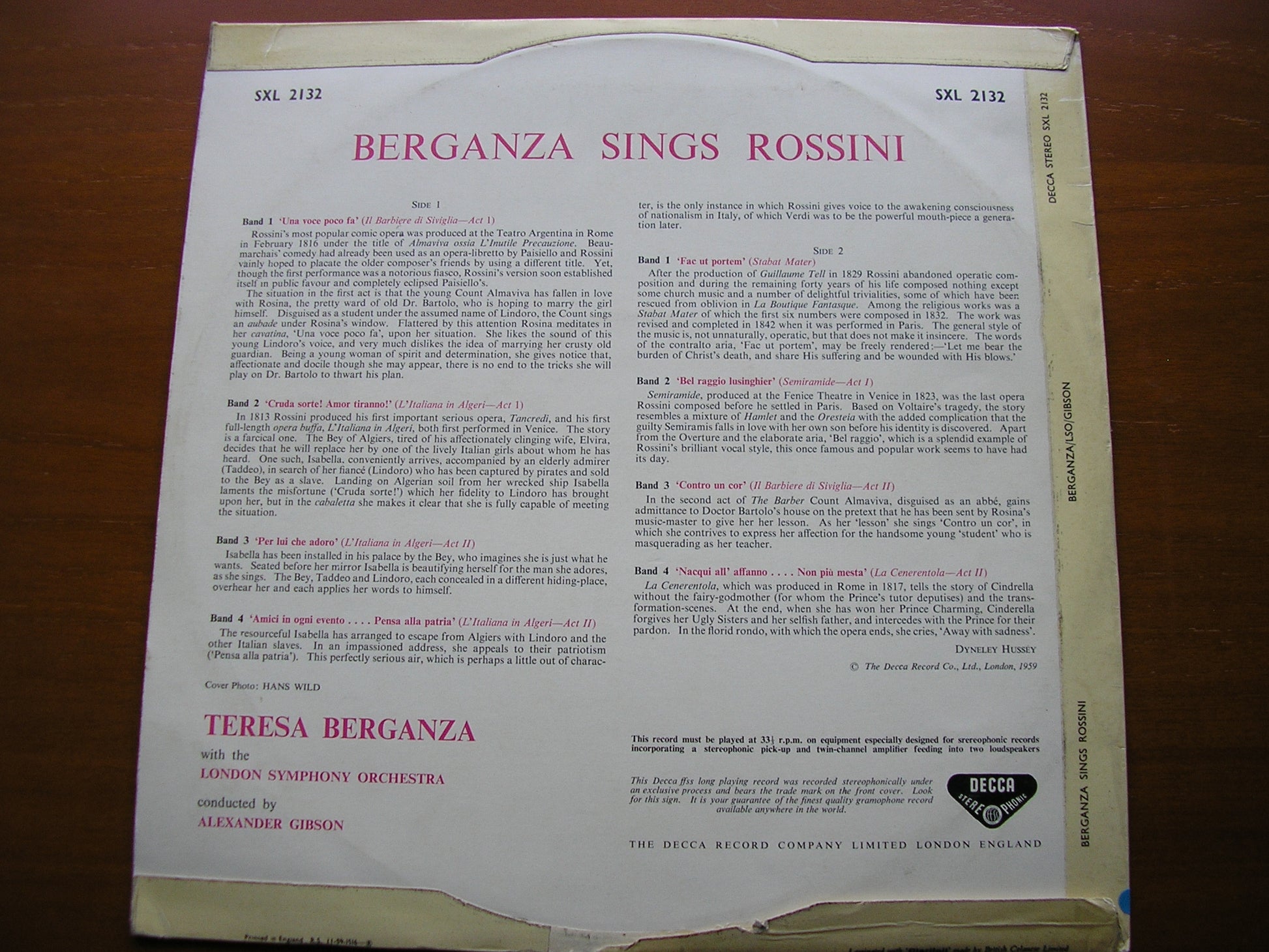 SXL 2132  ROSSINI ARIAS: Barber of Seville / Semiramide / The Italian Girl in Algiers / La Cenerentola / Stabat Mater     TERESA BERGANZA / LONDON SYMPHONY ORCHESTRA / ALEXANDER GIBSON