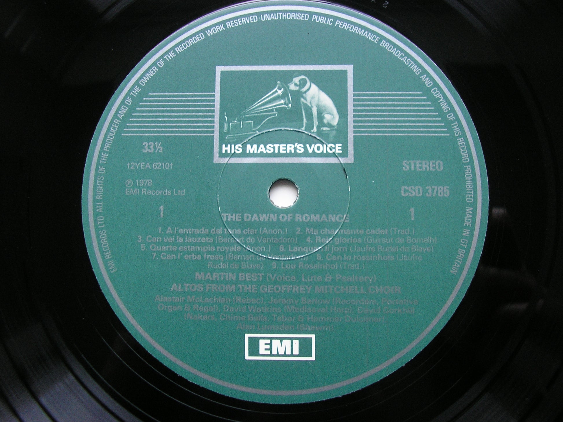 CSD 3785  THE DAWN OF ROMANCE: DE VENTADORN / DE BLAYE / FAIDIT / VIDAL / RIQUIER       MARTIN BEST / MEDIAEVAL ENSEMBLE