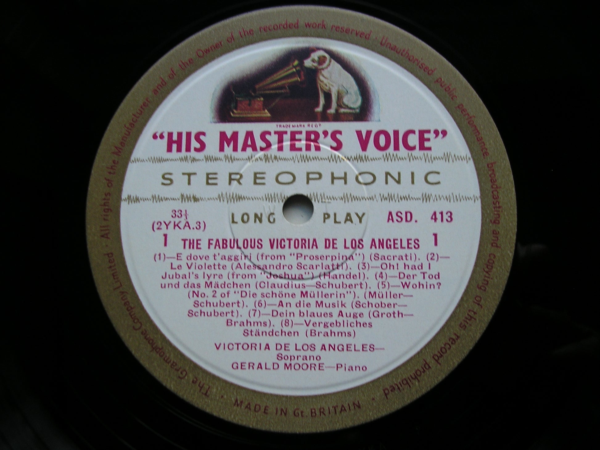 ASD 413  SONG RECITAL: SCARLATTI / SACRATI / HANDEL / SCHUBERT / BRAHMS / FAURE / GRANADOS / GURIDI / TURINA / VALVERDE     VICTORIA DE LOS ANGELES / GERALD MOORE, piano
