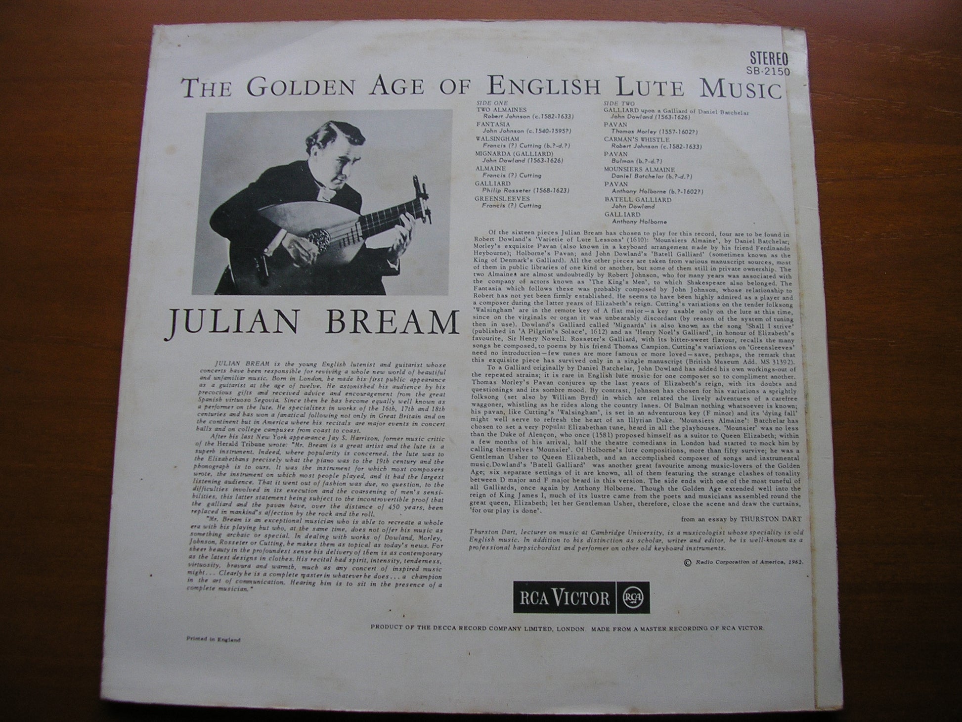 THE GOLDEN AGE OF ENGLISH LUTE MUSIC JULIAN BREAM SB 2150