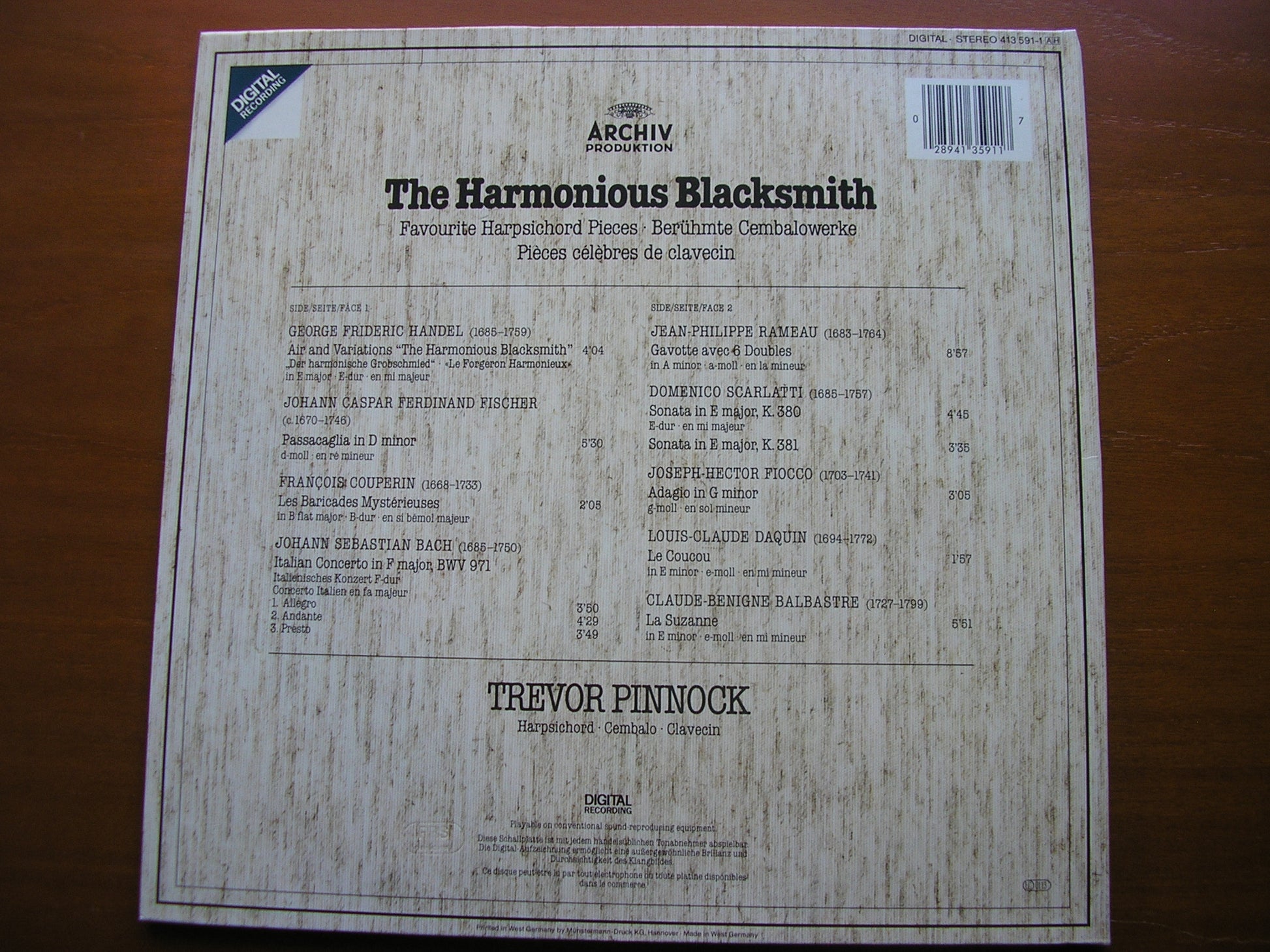 THE HARMONIOUS BLACKSMITH: FAVOURITE HARPSICHORD PIECES TREVOR PINNOCK 413 591