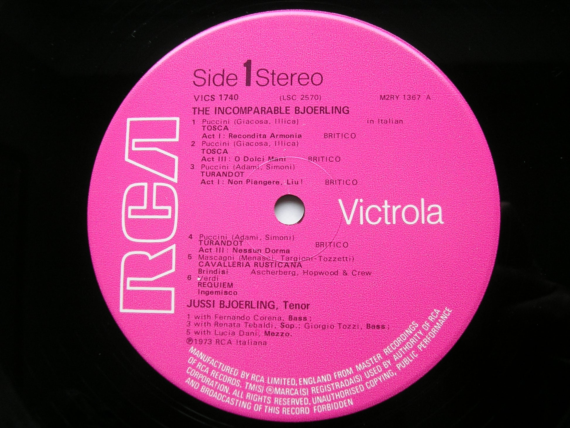 VICS 1740  OPERATIC ARIAS: PUCCINI / CILEA / VERDI / PONCHIELLI / MASCAGNI      JUSSI BJOERLING / VARIOUS ORCHESTRAS / REINER / EREDE / LEINSDORF