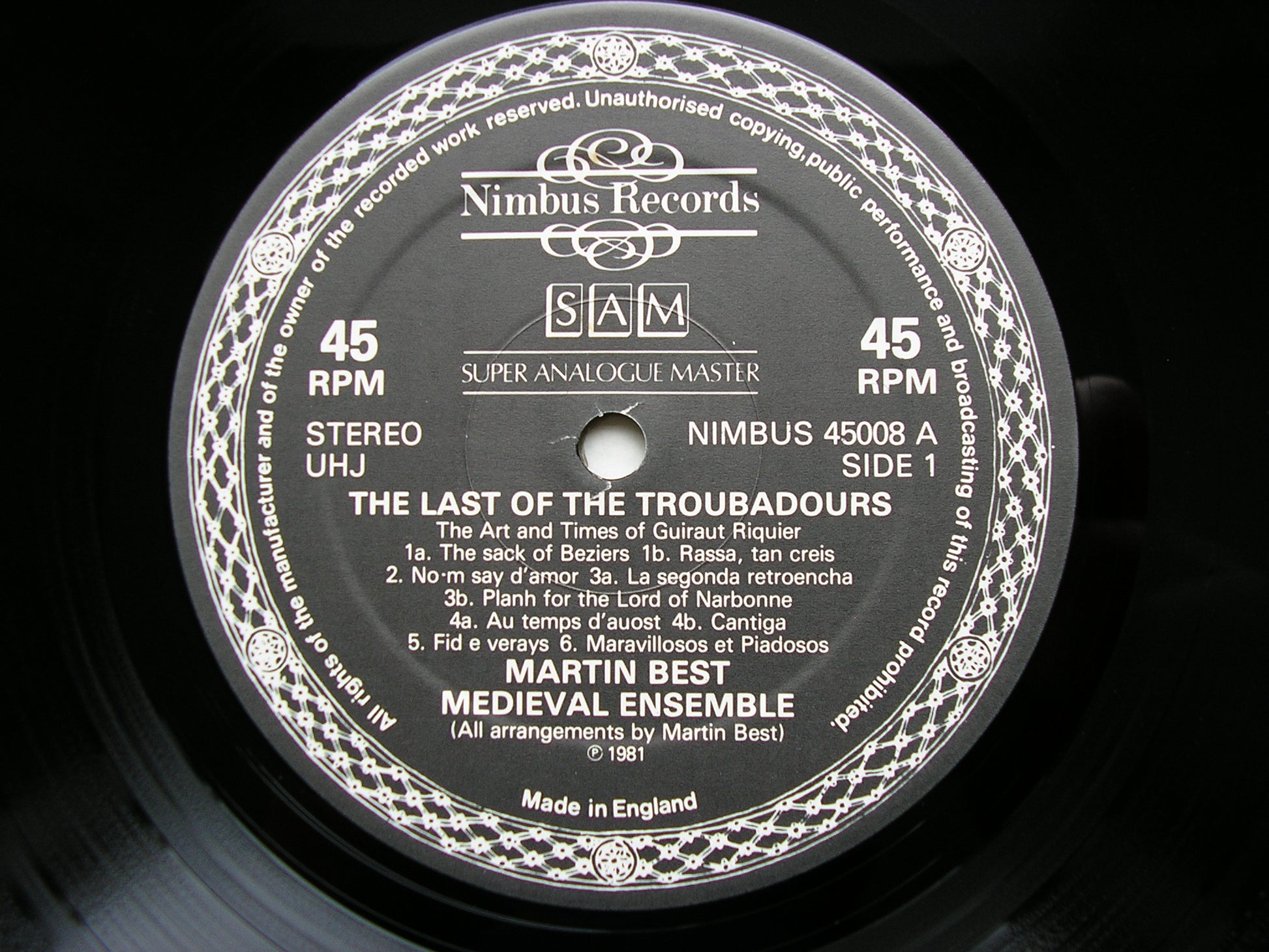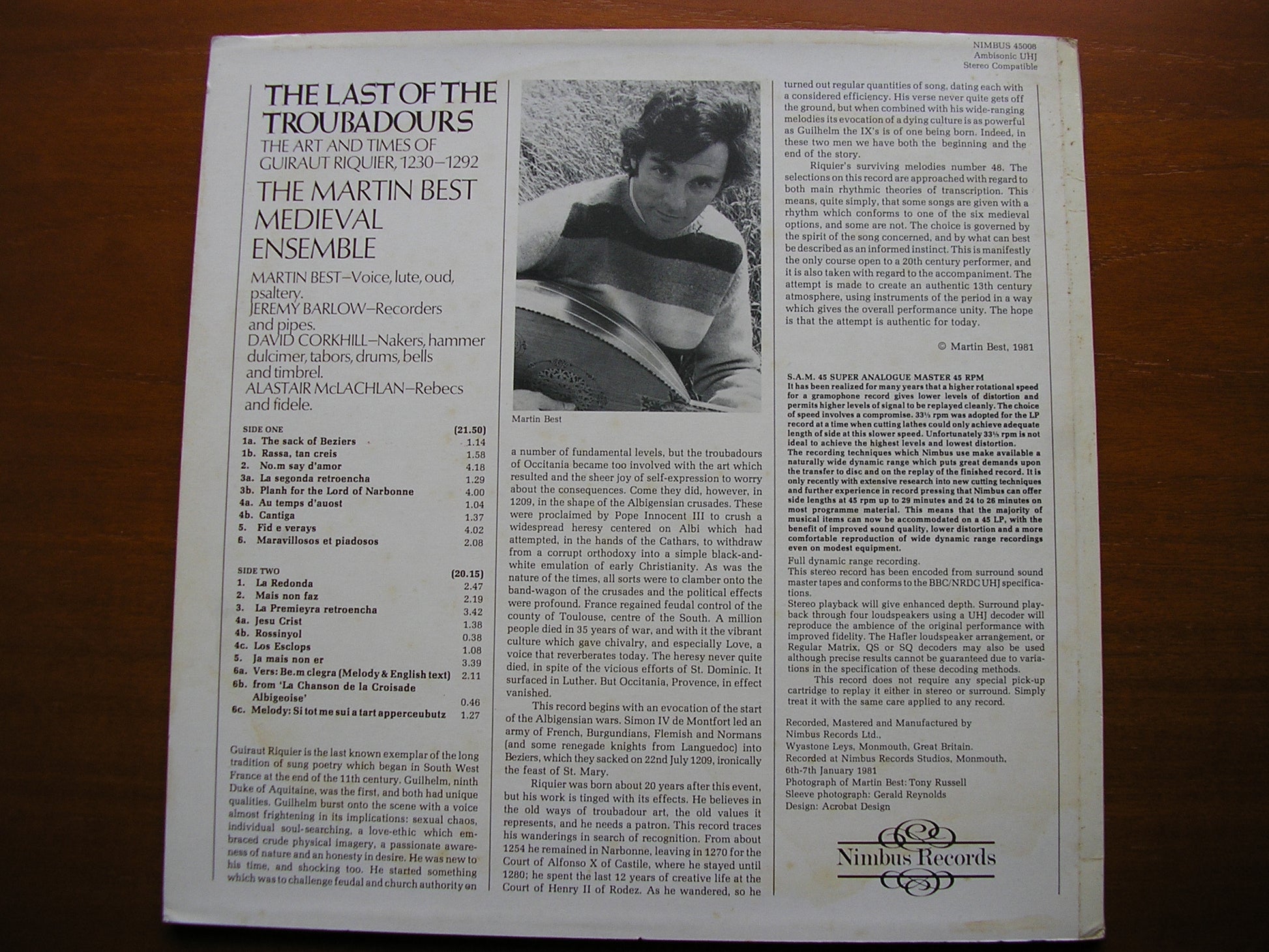 NIMBUS 45008  THE LAST OF THE TROUBADOURS: Music of Guiraud Riquier (1230 - 1292)   THE MARTIN BEST MEDIEVAL ENSEMBLE