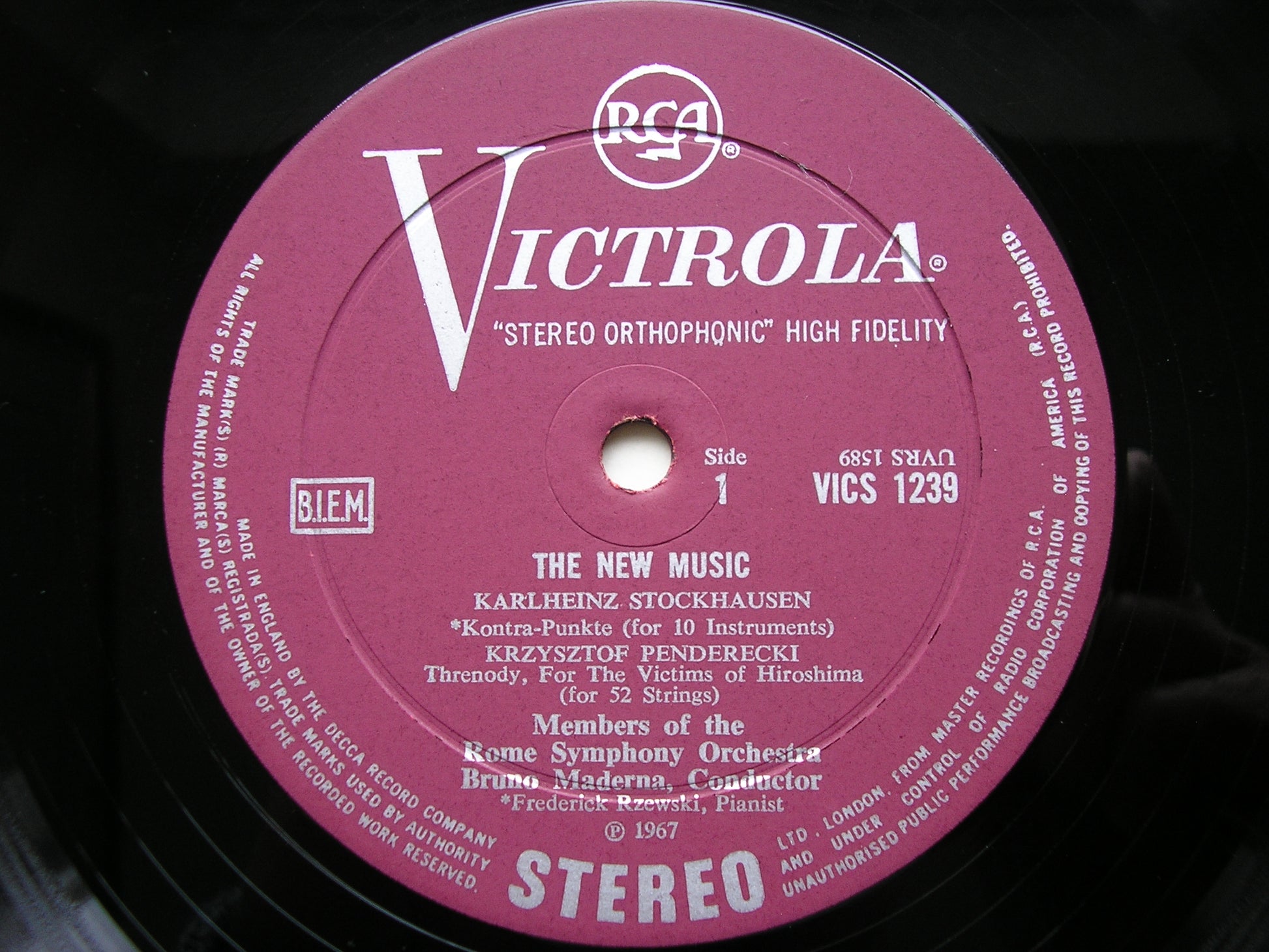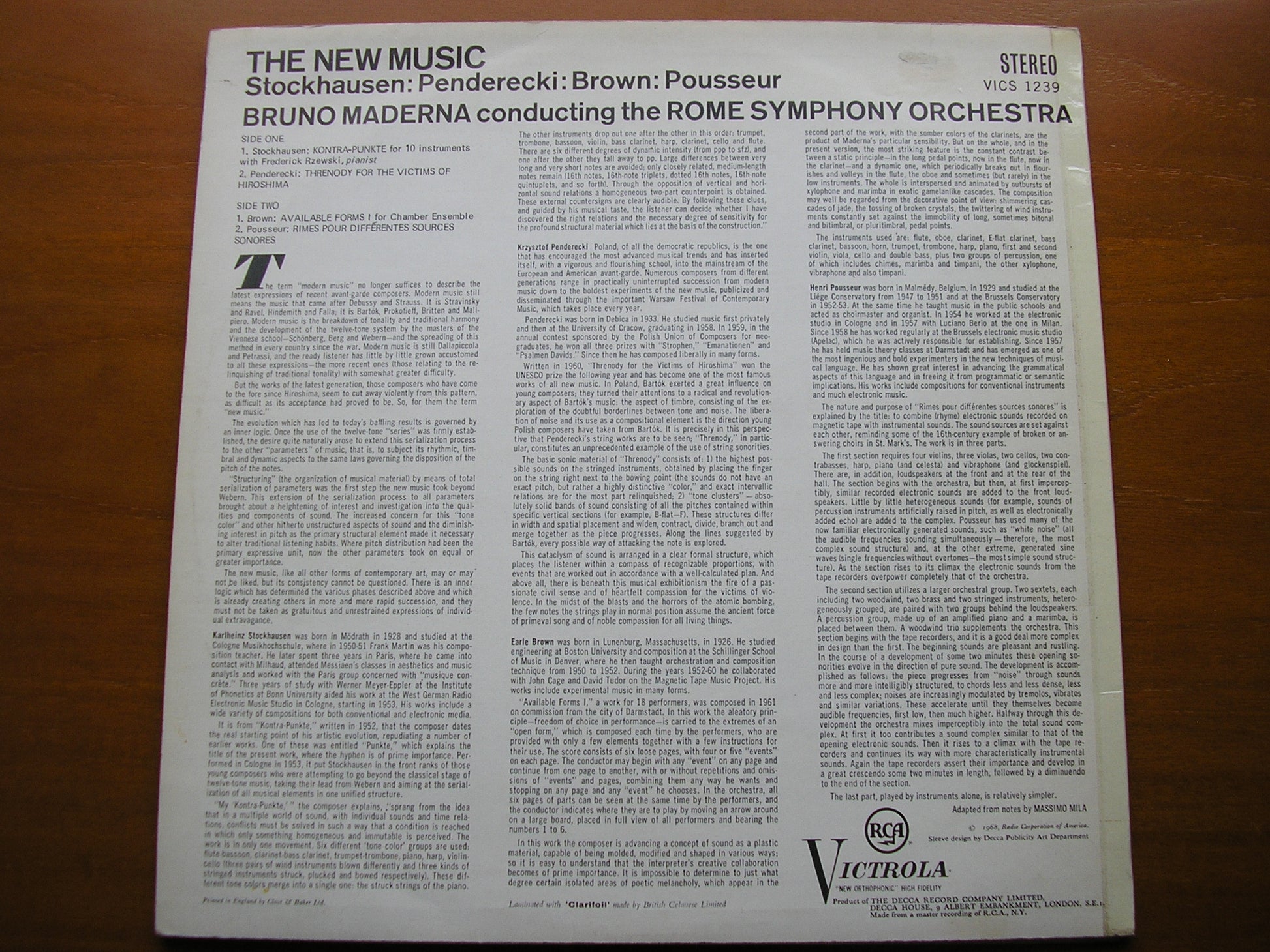 VICS 1239  THE NEW MUSIC: STOCKHAUSEN / PENDERECKI / BROWN / POUSSEUR     ROME SYMPHONY ORCHESTRA / BRUNO MADERNA