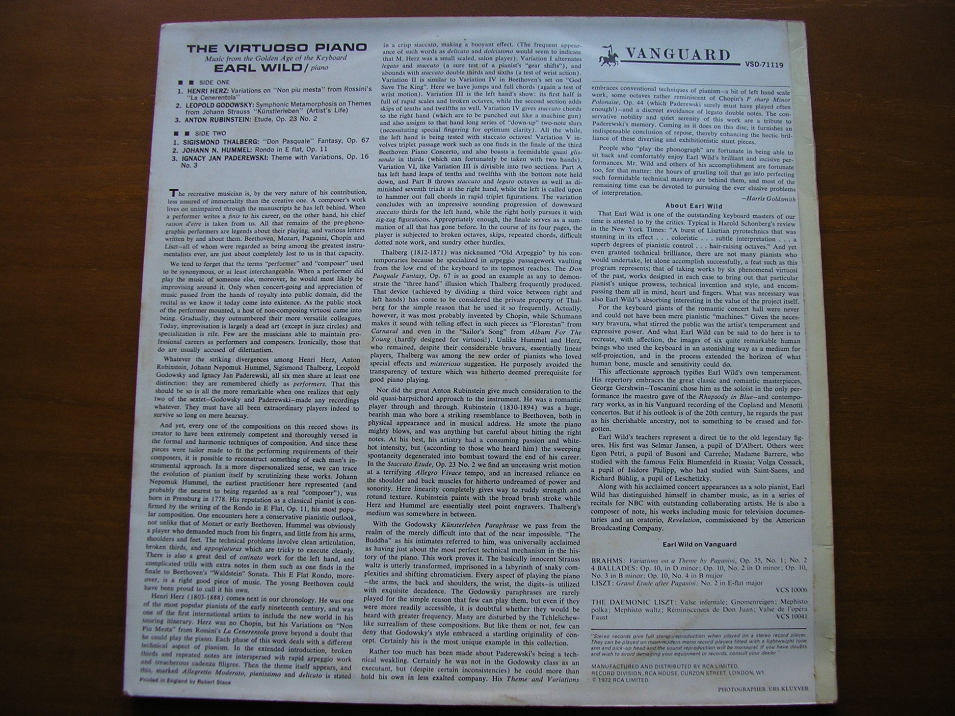 THE VIRTUOSO PIANO: HERZ / THALBERG / GODOWSKY / HUMMEL / RUBINSTEIN / PADEREWSKI EARL WILD VSD 71119