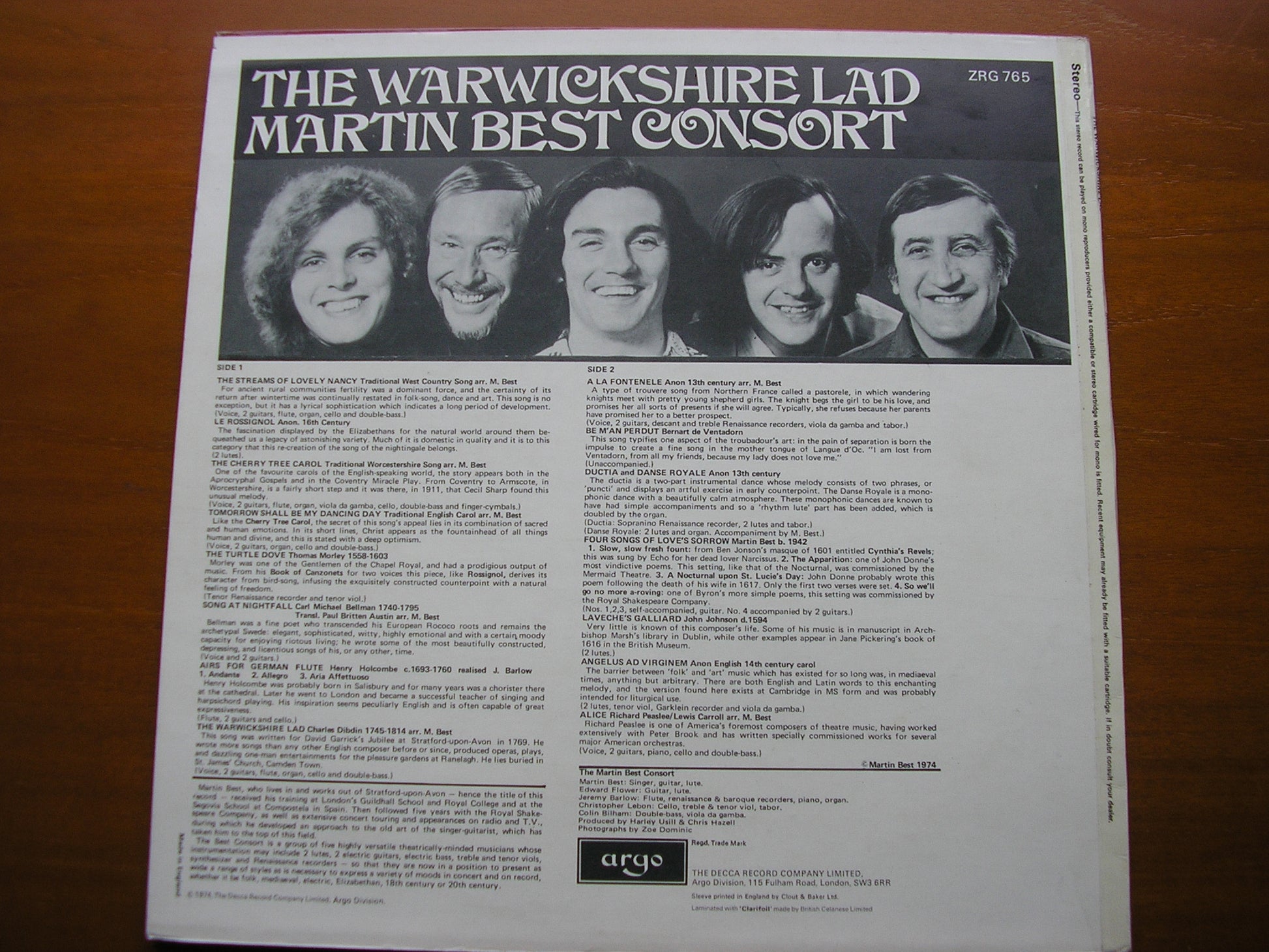 ZRG 765  THE WARWICKSHIRE LAD: SONGS & INSTRUMENTAL MUSIC     MARTIN BEST CONSORT