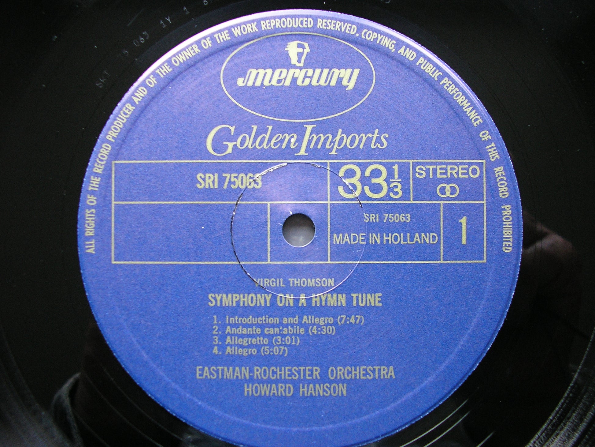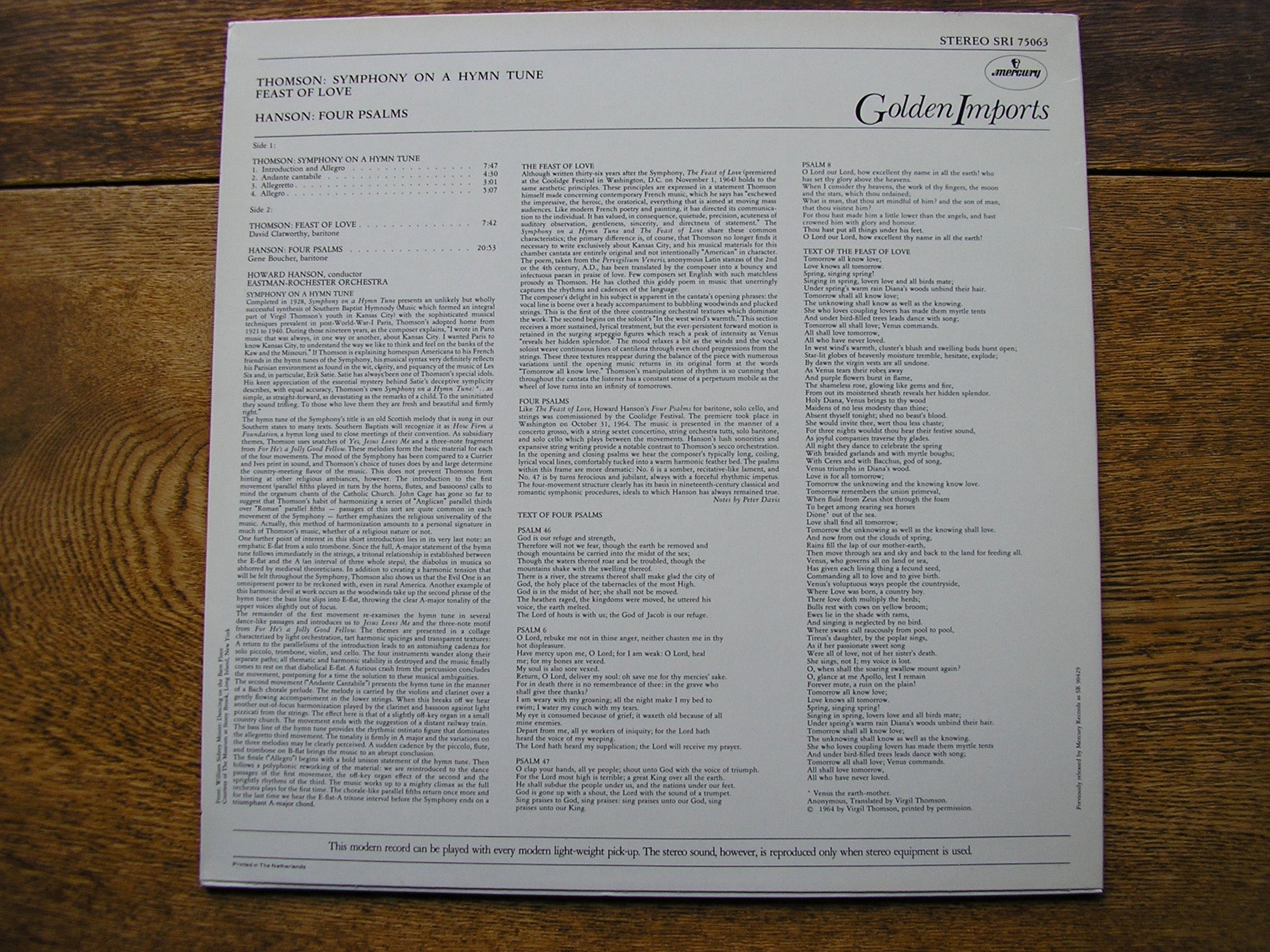 THOMSON: SYMPHONY ON A HYMN TUNE / FEAST OF LOVE HANSON / EASTMAN - ROCHESTER SRI 75063
