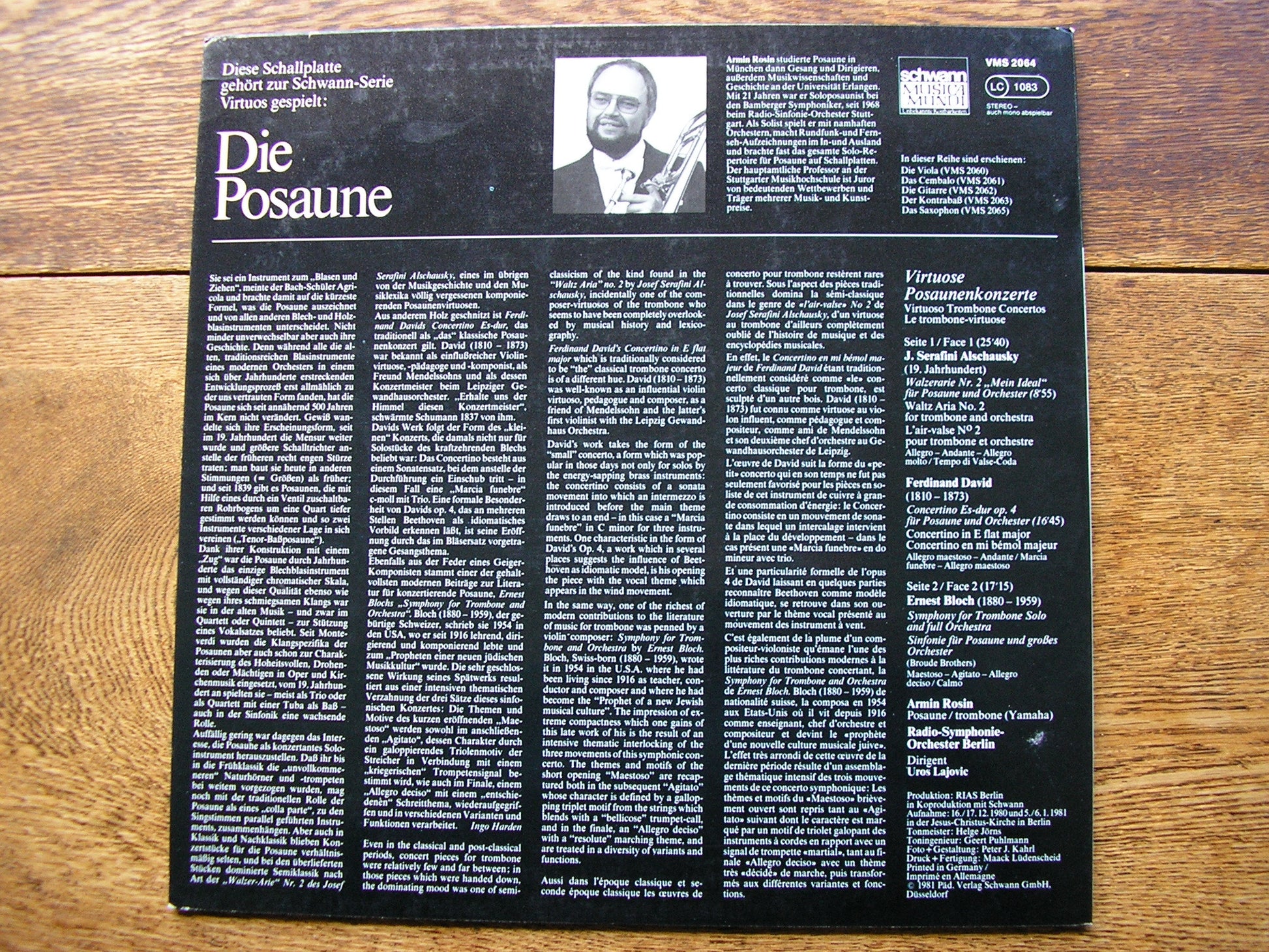 VMS 2064  VIRTUOSO TROMBONE CONCERTOS: ALSCHAUSKY / DAVID / BLOCH   ARMIN ROSIN / BERLIN RADIO SYMPHOMNY ORCHESTRA / UROS LAJOVIC
