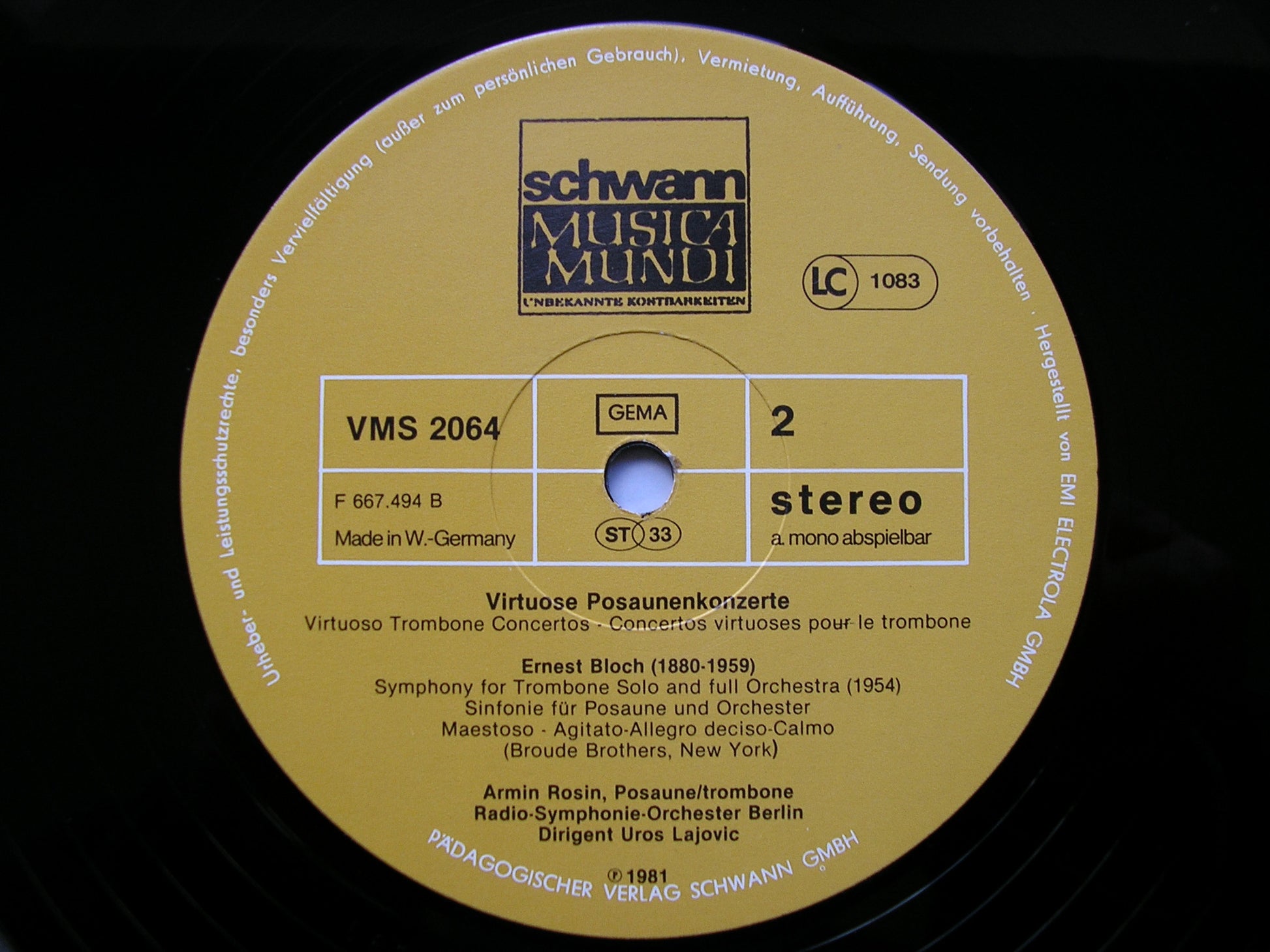 TROMBONE CONCERTOS: ALSCHAUSKY / DAVID / BLOCH ROSIN / BRSO / LAJOVIC VMS 2064