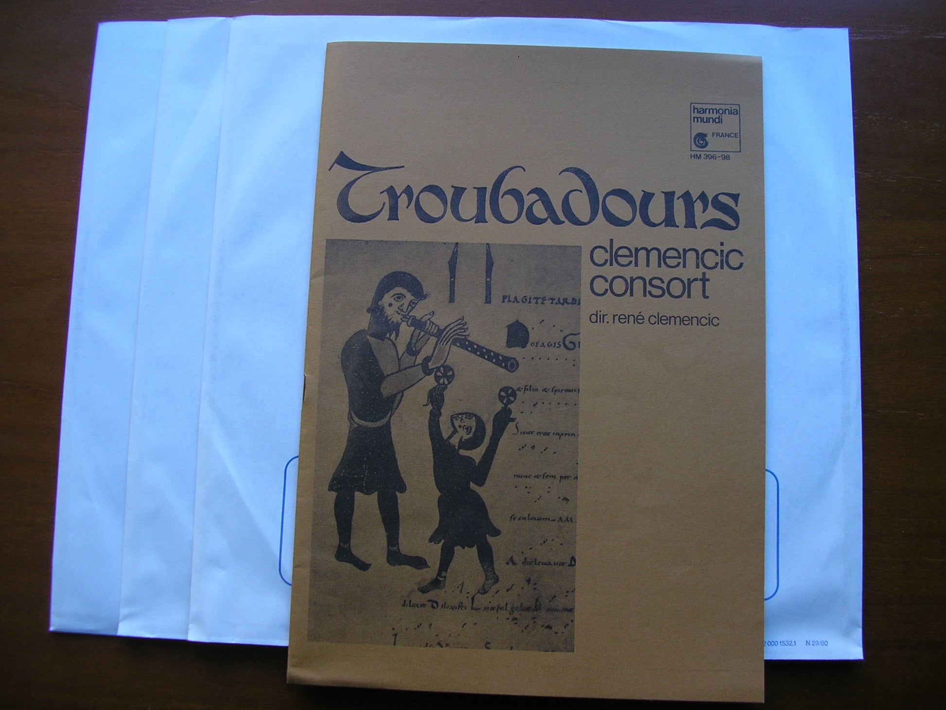HM 396-8    TROUBADORS: PIEROL / VIDAL / DE VENTADORN / DE VACQUEIRAS / DE DIA / DE PORCAIRAGUES / DE MARSELHA / DE CABESTANH / MARCABRUN / DE MIRAVAL / RUDEL      RENE CLEMENCIC / CLEMENCIC CONSORT