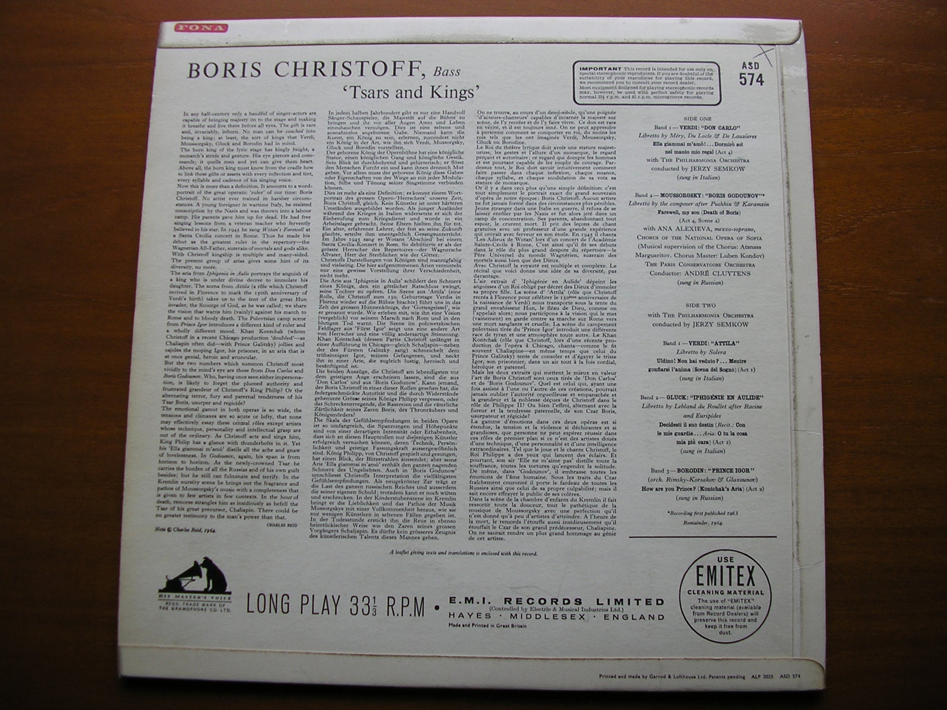 ASD 574  OPERA ARIAS: VERDI / BORODIN / GLUCK / MUSSORGSKY     BORIS CHRISTOFF / PHILHARMONIA ORCHESTRA / JERZY SEMKOW